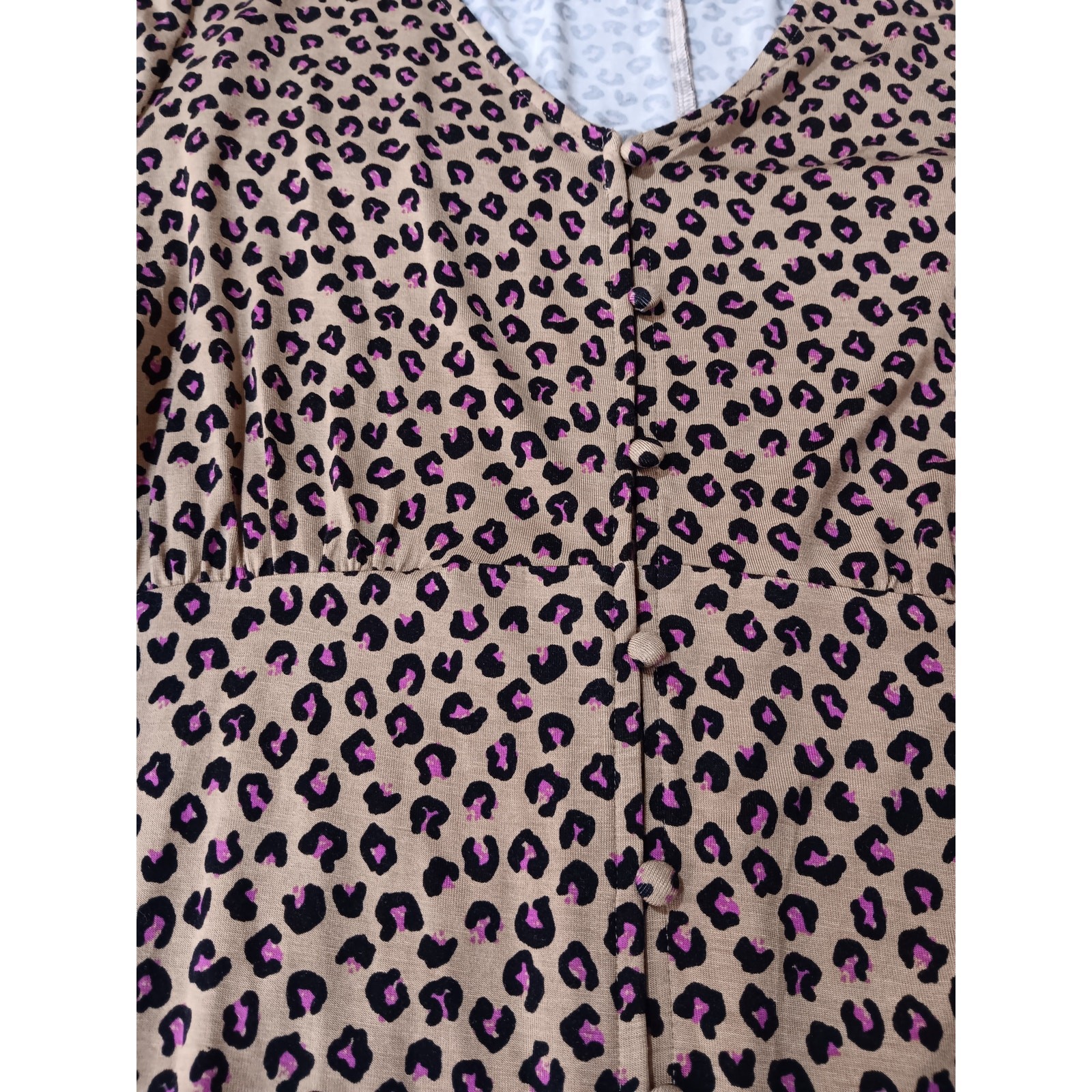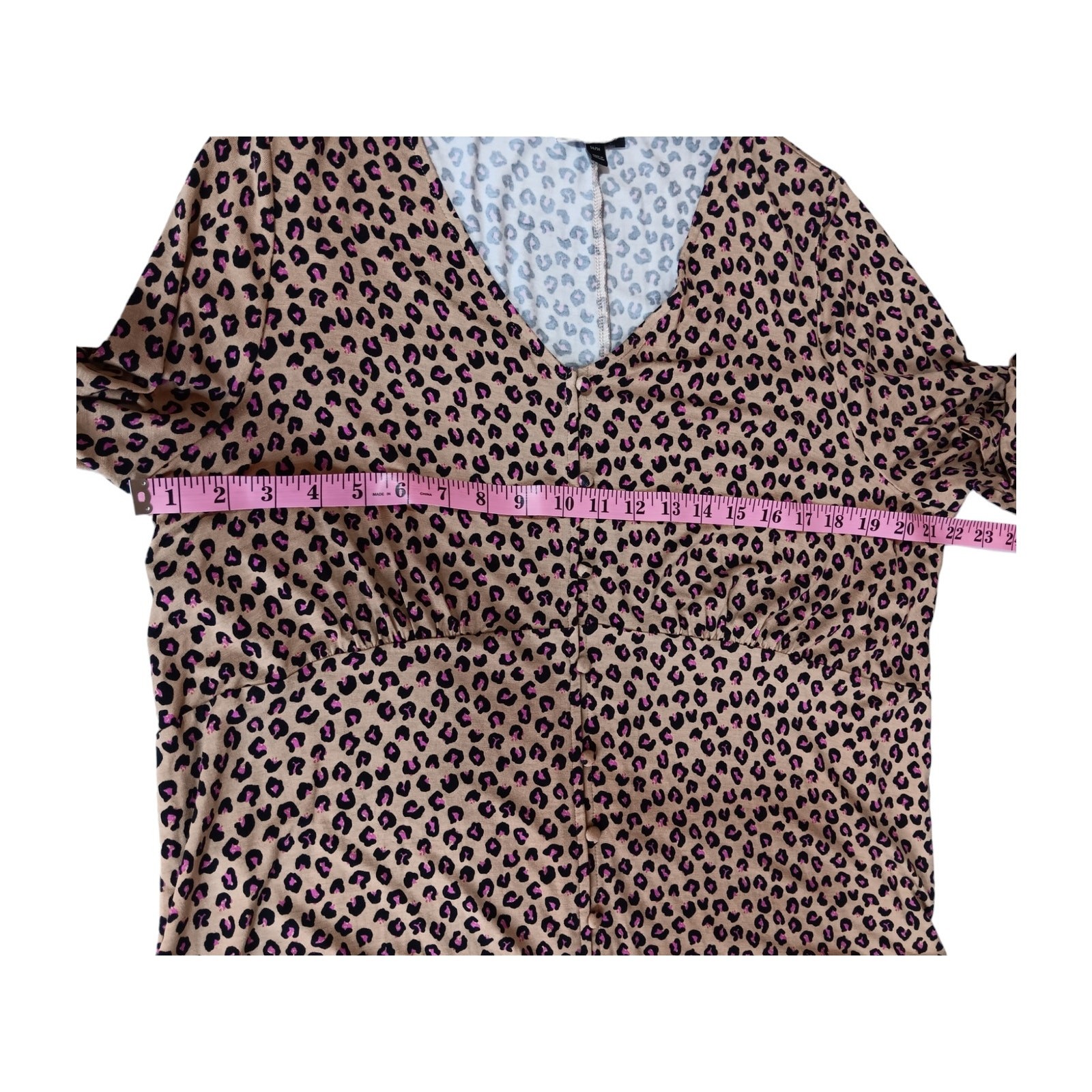 Fun print! Soft and stretchy with a cute yoke, gathers and covered buttons. Perfect for casual or work. In very good pre-owned condition. LANE BRYANT Top Blouse Shirt Size 14 16 Pink Animal Print Stretchy Knit V-Neck Measurements are in the photos. Keywords: Office Career Work Casual Secondhand Used Preowned Sustainable Smoke-free/pet-free home Color/texture may vary due to lighting/devices Items may show wrinkling from packing/transit ID:B2/10