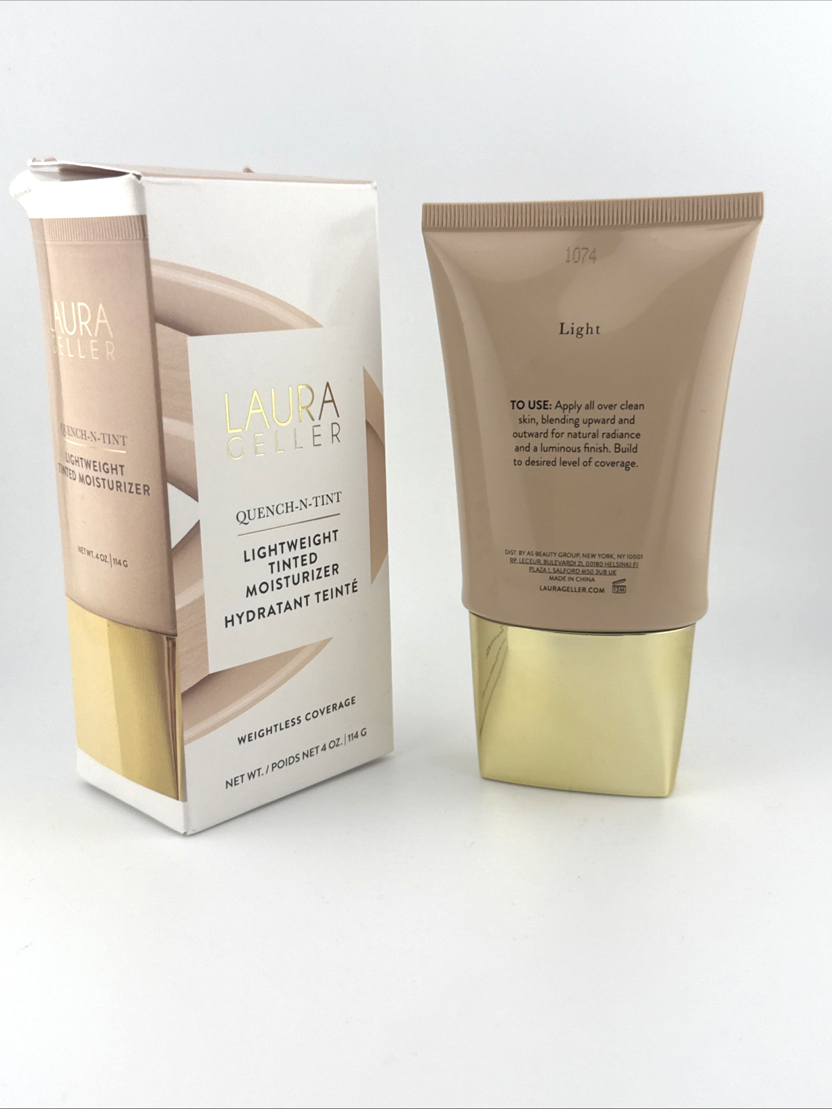 LAURA GELLER Quench-N-Tint Lightweight Tinted Moisturizer – Light – 4 oz – NEW Get the best of skincare and coverage with the Laura Geller Quench-N-Tint Lightweight Tinted Moisturizer in the shade Light . This hydrating, skin-loving formula provides a natural, radiant finish while delivering a boost of moisture—perfect for those no-makeup makeup days! 🌿 Product Highlights: Shade: Light Size: 4 oz / 118 ml Condition: Brand New & Unused Packaging: Factory Sealed or New in Box ✨ Features: Sheer-to-light coverage with a dewy, healthy glow Infused with hydrating ingredients for all-day moisture Lightweight, breathable texture – won’t clog pores Great for dry to normal skin types Wear alone or under foundation for added hydration Give your skin a fresh, radiant boost with this all-in-one tinted moisturizer from Laura Geller – a must-have for glowing, effortless beauty! 💧 Skincare meets makeup 🚚 Ships quickly & securely 🛍️ Bundle with more Laura Geller favorites in our shop!
