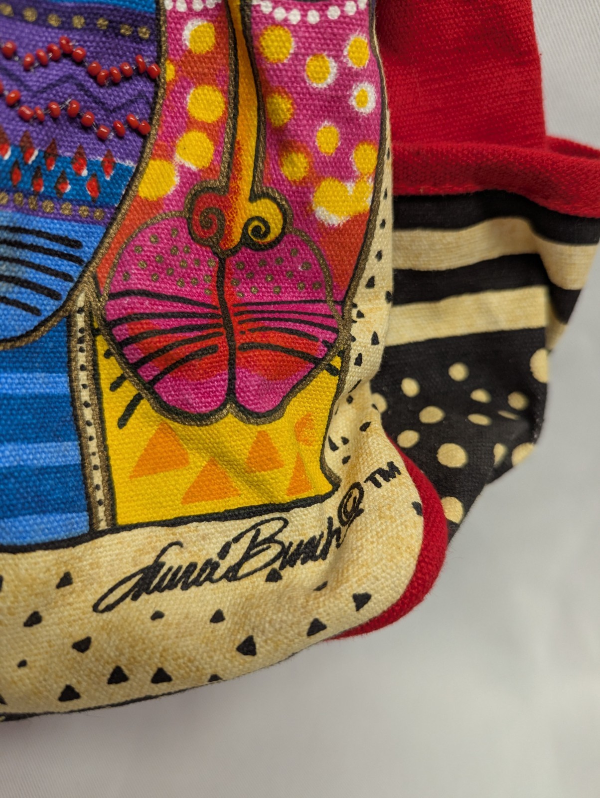 The Laurel Burch Tote Shoulder Bag is a medium-sized handbag featuring a unique cat-themed pattern on the exterior. Made from cotton, this multicolor bag has a zipper closure and side pockets for added convenience. The shoulder strap is a colorful cotton material, making it a fun and stylish accessory for women who love quirky and whimsical designs. Perfect for everyday use, this shoulder bag from Laurel Burch is sure to stand out with its playful cat motif.