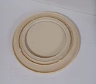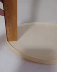 Introducing the Lazy Susan Manual-Rotating Server Plate, a versatile and practical addition to any kitchen. This round plate has a diameter of 10-1/2" and is made of durable plastic material. It features a rotating base and a free-standing mounting option, making it easy to use and store. The Lazy Susan plate is ideal for serving and/or organizing box and can food items on a shelf. inner ledge measures 1/4" tall plate weighs 7.2 ounces. Color: Off White multipurpose design and easy-to-use feature Height: 3/4" Tall Get your hands on the Lazy Susan Manual Rotating Server Plate today and keep your kitchen neat and organized!