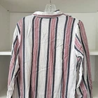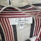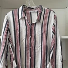 100% viscose. Unlined. Button front closure. Waist tie accent. Buttoned cuffs. Size small. Great preloved condition