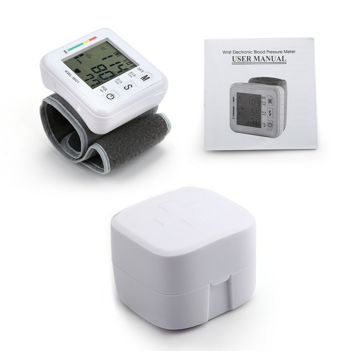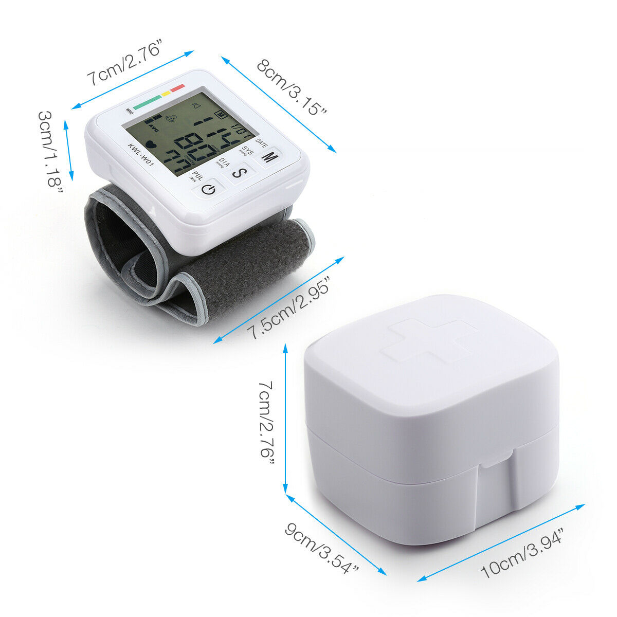 Features 【198 Memory Mode & Double Users Mode】 The Wrist blood pressure monitor is two users mode and 99 memories for each person, conveniently toggle to reading the memories for each person.The measurement date and time will also be automatically recorded, more easier track your health data. The 2-PERSON Memory function is the best choice for family. 【High Accuracy & Easy To Use】 Ivkey blood pressure monitor adopts intelligent pressure automatic measurement technology.This digital blood pressure monitor device has an advanced measuring technique that gives you not just the fastest reading method but more importantly the most accurate one.The measuring process starts automatically once pressing a button, super easy and convenient for home use, especially for the elders. 【Large LCD Display with Voice】 The screen can tell you very directly whether your blood pressure is normal.Extra-large LCD display show clearly measurements as systolic pressure, diastolic pressure, pulse rate, date, time, and user. One-button start and energy-saving.sound clear and easy to recognize, Voice prompt operation steps. 【Compact and Portable】 Elegant and tiny size suit for daily use and carry with carrying case to make sure you can easily carry your BP Cuff anywhere you go, and be able to record your heartbeat when doing various activities or traveling. Wrist BP monitors are convenient for the travellers because of their small size. However, Wrist blood pressure measurement is not a valid alternative to traditional measurement at the arm and its use should be consulted with your physician. Specifications: Measuring range :Blood Pressure : 30~280 mmHg Pulse Rate : 40~199 beats/min Calibration Accuracy : Blood Pressure : ± 3 mmHg Pulse rate : ± 4% of reading Operating environment : 50 °F ~104 °F with relative humidity up to 85% (non condensing) Storage/ Transportation environment : with relative humidity up to 85% (non condensing) Power Source :2 x 1.5 V AAA batteries(not included) Weight :approx. 4.23oz (exclude batteries) Dimensions :approx. 71mm x 84mm x 32.2mm (W x H x D) Cuff circumference (M Size) : approx. 4.92~8.26inch (12.5~21 cm) Blood Pressure : 30~280 mmHg Pulse Rate : 40~199 beats/min Blood Pressure : ± 3 mmHg Pulse rate : ± 4% of reading Package 1 x Wrist blood monitor (with case) 1 x User manual