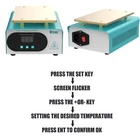 How to Use 1. Press the "SET" key to enter the temperature preset mode. 2. Press the"▲" or "▼" key to adjust the temperature up or down. 3. Press the "SET" key again to confirm after presetting the temperature. Specification Model: 946S Color: Blue Plug: US Voltage: 110V Power: 400W Heat Area: 190*110mm/7.48*4.33inch Plug: US Standard Display: LED Digital Screen Heat Generation Mode: PTC Heating Element Temperature Range: 50-180℃/122-356℉ Material: Iron, Aluminum Surface Treatment: Painting, Oxidation Gross Weight: 1.72kg/3.79lbs Package Size: 25.5*20*13.5cm/10.04*7.87*5.31inch Package Included 1* LCD Separator Machine 1* Power Cord 1*English Manual LCD Screen Separator Heating Hot Plate Removal Repair Machine cellphone Repair LCD SCREEN SEPARATOR MACHINE Mobile Phone Tablet Screen Separator Heating Plate Repair Tool LCD Screen Separator 400W Description There is a high chance that the phone screen is broken just the surface lens is broken, not the LCD screen inside it. With this screen separator, you can greatly reduce the cost of changing your screen. This machine uses a PTC heater and an aluminum heating plate, which heats up quickly and is very simple to operate, even if you do not know the circuit or the brush can easily operate. How to Use 1. Press the "SET" key to enter the temperature preset mode. 2. Press the"▲" or "▼" key to adjust the temperature up or down. 3. Press the "SET" key again to confirm after presetting the temperature. Specification Model: 946S Color: Blue Plug: US Voltage: 110V Power: 400W Heat Area: 190*110mm/7.48*4.33inch Plug: US Standard Display: LED Digital Screen Heat Generation Mode: PTC Heating Element Temperature Range: 50-180℃/122-356℉ Material: Iron, Aluminum Surface Treatment: Painting, Oxidation Gross Weight: 1.72kg/3.79lbs Package Size: 25.5*20*13.5cm/10.04*7.87*5.31inch Package Included 1* LCD Separator Machine 1* Power Cord 1*English Manual Key Features Sturdy and Durable: Its body is made of high-quality iron through painting, making it hard and not easily damaged. The aluminum heating plate has high strength and good corrosion resistance after oxidation, so it can be used for a long time. Precise Temperature Control: You can select the right temperature with the temperature adjustment key for more precise temperature control to make screen separation easier. The LED display allows you to observe the temperature better. High Performance: The screen separator machine has a built-in PTC heater that heats up quickly, so that the screen can start separating in 3-5 minutes of preheating. The heating plate is made of aluminum, which conducts heat quickly and evenly, making the machine work more efficiently. Good Heat Dissipation: Multiple cooling holes on the housing ensure better cooling performance and more stable operation in high-temperature environments. High Compatibility: It has a large heating plate size of 7.48*4.33inch and is suitable for all brands of mobile phones with a screen size of less than 8". Save Money: This machine separates the broken glass from the LCD, and if the LCD is still working well, you only need to replace one glass screen instead of the entire screen assembly, which saves you money. Safe to Use: The machine is equipped with a built-in fuse to ensure that the machine will not burn out during operation, which guarantees the safety of the use process. Quality Service: We stand behind all our guests and look forward to assisting you with your purchase. It is our pleasure to answer your confusion and questions. So please feel free to contact us if you have any problems with the product. Details One-touch Start Button: This screen separator is designed with a one-touch start button for your convenience. And the power jacks and switches of the machine are located on the back of the machine, adjacent to each other, making it more convenient for you to operate. Rounded Corners: The corners of the machine are rounded to effectively avoid scratching your hands during operation. Anti-slip Foot Pads: There are four anti-slip foot pads on the bottom to make the machine more stable during work. Application It is a machine for repairing damaged screens by separating the LCD from the lens. It is suitable for all brands of mobile phones with a screen size of fewer than 8 inches. Notes When you are a new repairer, we suggest you better practice your skills with some damaged LCD components. Please allow the slight color difference caused by the shooting light and 1-3cm error due to manual measurement, and make sure you do not mind before ordering. Payment Delivery details Terms of sales About us Contact us Payment We accept ebay payment 。 Fees such as import duties, taxes are not included in the item price or shipping costs. These charges are the buyer's responsibility. Delivery details Shipping: 2-9 working days to: USA Terms of sales We maintain high standards of excellence and strive for hundred percent customer satisfaction. Feedback is very important to us. We hope that you contact us immediately before you give neutral or negative feedback, so that we can address your concerns. It is impossible to address issues if we do not know about them! About us Your satis faction is our ultimate goal. We work hard to earn your trust and future business. Our certified technicians have tested each item before shipping. The unit comes with 1 year limited warranty on all manufacturing defects. a) If you receive a defective item, you may return it or ask for a discount. Please contact us within 14 days after you receive the package. b) What you returned must be intact and in its original packaging as re? u. Customer is responsible for shipping costs of the returned item. c) We will cover the cost of shipping back t with the shipping rate indicated in the registration page. We will send you a new unit or refund the full payment you paid. Thank you. Contact us Business Hour Business Hour: Monday To Friday: 8:30 AM to 5:00 PM (Beijing 