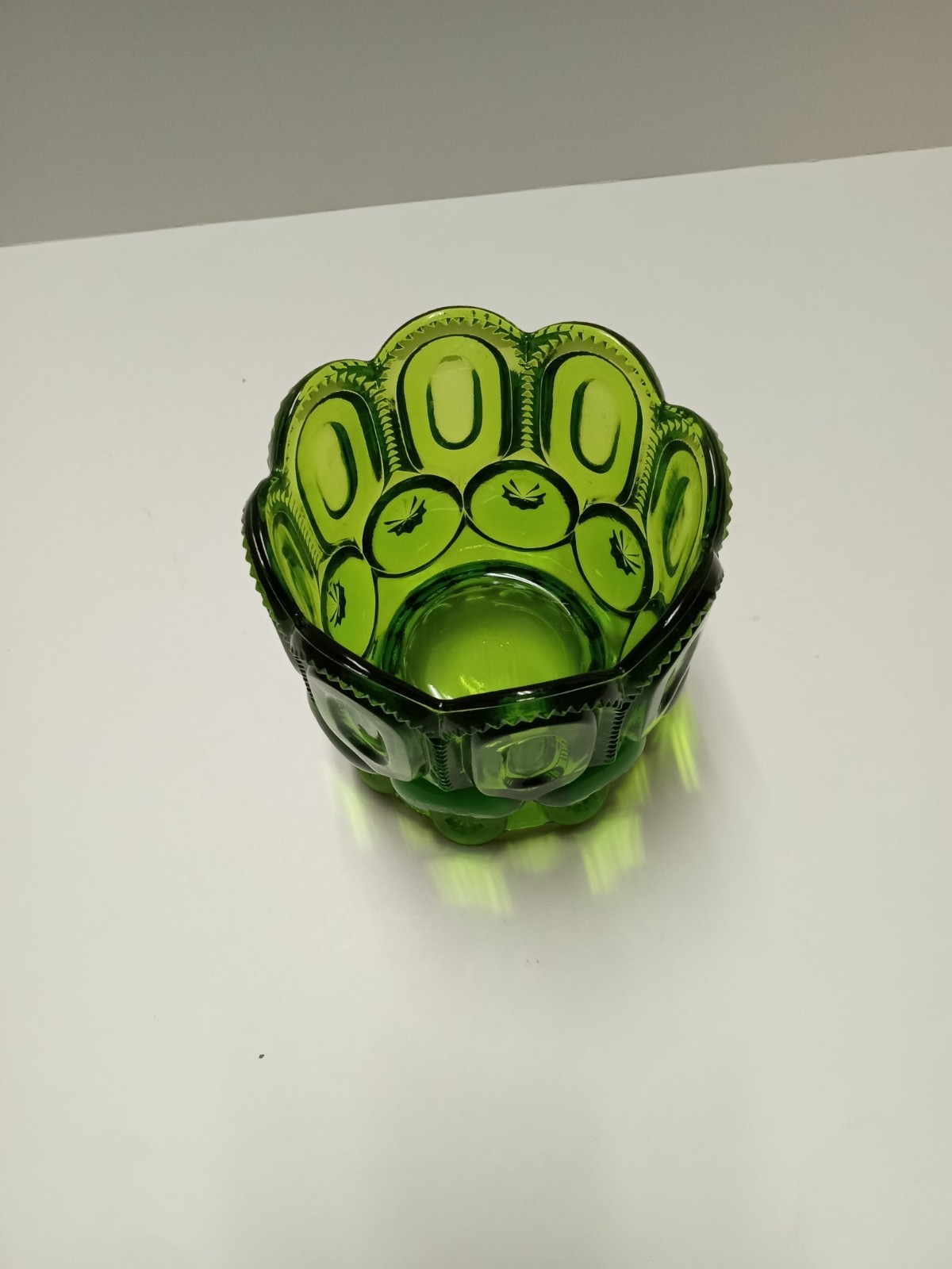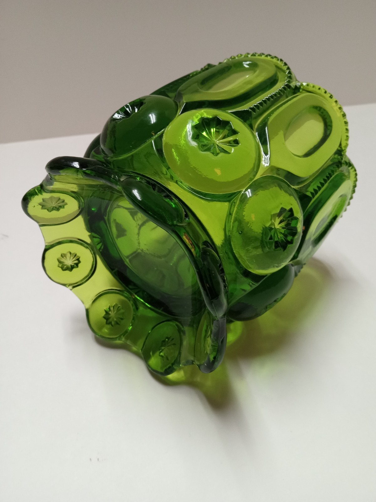 L.E. Smith Green Glass Moon and Stars 7.5" Pedestal Candy Dish BOTTOM ONLY