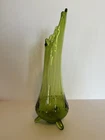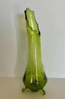 Beautiful mcm avocado green glass vase. L.E.Smith nine fingers and three toes.