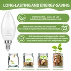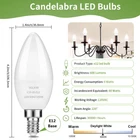 【ENERGY SAVING】To output 600 lumens of light, Our candelabra led light bulbs require only 6 watts, CFL/halogen bulb requires 30-40 watts, and the incandescent bulb requires approximately 60 watts. Save up to 90% on energy and make lighting costs a smaller portion of your bill. 【HIGH-QUALITY LIGHTING】E12 bulb with a color rendering index of 90+, the 5000K color temperature of the light is similar to daylight, which makes the objects under its illumination show vivid and natural colors. No flickering, no glare, effectively protects you and your family's eyesight. 【30000 HOURS LIFESPAN】E12 LED bulbs are different from Incandescent/Halogen bulbs, directly converting electrical energy into light energy (traditional bulbs, electrical energy - heat - light energy), which is the fundamental reason why LED bulbs are energy-saving, no waste of electricity, no heat, high service life. you can enjoy beautiful, long-lasting lighting. 【WIDE APPLICATION】LED E12 light bulb Suitable for any light fixtures with an E12 base such as ceiling fan lights, chandeliers, table and wall lamps. Widely used in the kitchen, bedroom, living room, bathroom, corridor, entrance hall, and dining room as well as the bar, hotel, cafe, etc. 【Quality Guarantee】With such high-quality E12 candelabra bulbs, we are confident in providing 36 months warranty and excellent after-sales service (7*24H) to our customers. if you have any questions, please feel free to contact us via Amazon mailbox for quick resolution.