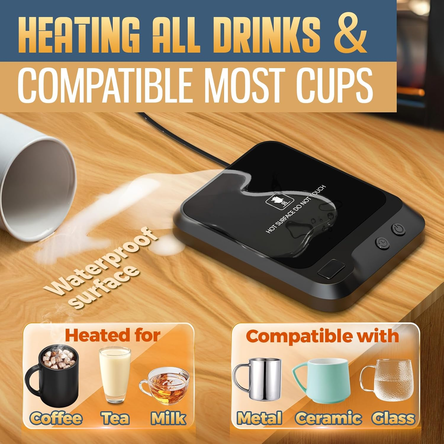 This coffee mug warmer is a game-changer for keeping drinks hot without reheating! The LED display is super clear, and the auto shut-off gives peace of mind. Love the three temperature settings—perfect for tea, coffee, or even melting candles. The timer is a great touch for busy mornings, and the sleek black design looks stylish on any desk. Definitely a must-have for anyone who hates cold drinks!