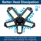 Description: Color Temperature: 6500K (white light) Housing Material: Plastic Size: As shown Voltage: 100-265V Luminous flux: 5000LM Beam angle: 90°-360° Deformable design to meet the requirements of different lighting environments. Suitable for gymnasiums, theaters, warehouses, parking lots, garages, etc. Specifications: - Super Bright LED Garage Lights: Led garage light bulb brings you ultra bright 5000LM. With 5 ultra-bright adjustable LED heads for your convenience to adjust the angle of light to focus the area you work. Bright daylight for your garage and kicthen, providing the best indoor lighting experience. - Durable & Long Service Life: This LED Shop Light is stable and durable under maximum performance, heat- high-temperature resistant and corrosion resistant. Safe to use. - Versatile & Energy saving: High 5000 lumen output makes this LED garage light bulb super bright and save energy up to 85%. Ideal for both indoor and protected outdoor fixtures,garage, warehouse,basement, barn, office, supermarket, station, restaurant, hotel, workshop,display area etc. - E26/E27 base & Easy to Install: No tools required, no wiring and professional electricians are needed. Installation is as easy as screwing in a light bulb. Package Included: 1* LED Garage Light