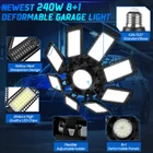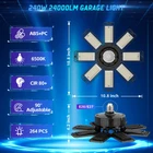 These 240W garage lights are surprisingly bright with 264pcs LED chips, 24000 lumens lighting with 6500K daylight. Garage led lights are built-in LED drivers, saying goodbye to traditional fluorescent bulbs and their distracting buzzing or flickering. With our led garage lights, you can enjoy efficient task lighting that reduces electricity costs. Experience ultimate beauty and color accuracy with our adjustable garage lights ceiling led. The design of 8 adjustable panels and central light enables the led shop light to achieve 360° comprehensive lighting coverage. Deformable led garage ceiling light panels can be precisely angled to eliminate shadows and vignettes, making the most of every area and converting it into a safe work area or storage space . The garage light fixtures are made with high quality ABS material and aluminum heat dissipation structure, which have good durability and can withstand long-term use and the test of different environmental conditions, reducing the frequency of bulb replacement and save costs. Lights for garage can be operated in temperatures from -30℃ to 50℃. Our garage led lights are easy to install, just screw into the E26 or E27 bulb socket, connect to 85-265 volt AC power supply and you are ready to use. With no replacement lighting fixtures requiring modifications to ceiling fixtures, and no professional skills required, lighting upgrades become simpler and more worthwhile.Bring great changes to your garage, barn, workshop, attic, basement, attic, underground areas, warehouses, and storage room take action now! We provide you with high-quality products and good after-sales service. If you have any questions during the use of the garage light fixture, please feel free to contact us via email.