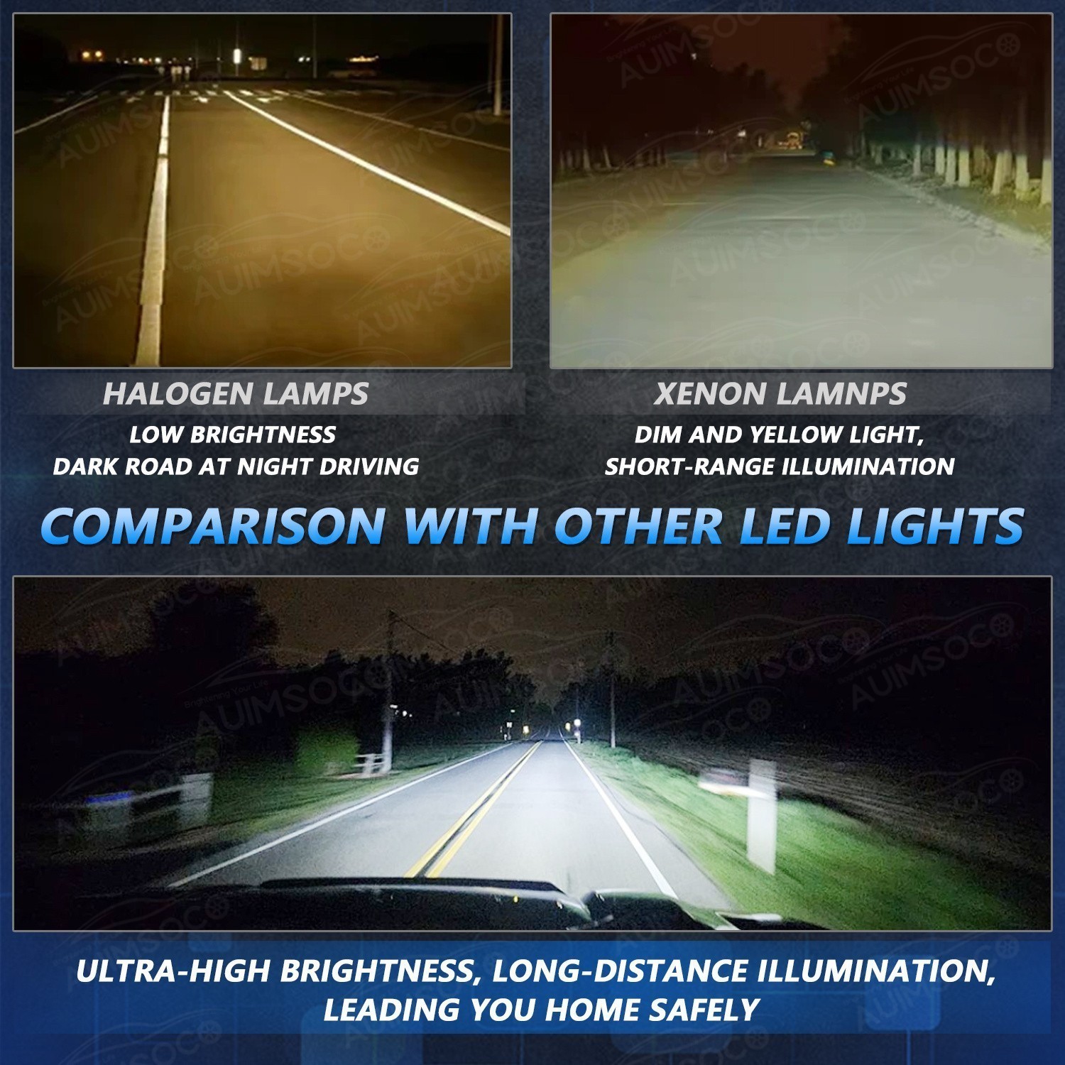 Home Payment Shipping About us Contact us Details AUIMSOCO Wirless 9005 LED Headlight Bulbs Light Type: 9005 HB3 Wattage: 100W Working Voltage: 12V-36V Waterproof Rate: IP68 Installation: PLUG-N-PLAY ,Canbus Error Free Color Temperature: 6000K-6500K (Cold White) Luminous Flux: 36,000LM Life Span: Up to 50,000 Hours Operating Temperature: -40℃ to +80℃ Cooling Method: Aviation aluminum lamp body + Upgrade Copper Pipe +12,000RPM Slient Turbo Fan Beam Type: Headlight (High Beam / Low Beam) AUIMSOCO Wirless D2 LED Headlight Bulbs Light Type: D2S/D2R/D2C LED Type: 30x High Brightness CSP LED Chips / Bulb Wattage: 240W Working Voltage: 12V-36V Waterproof Rate: IP68 Installation: PLUG-N-PLAY ,Canbus Error Free Color Temperature: 6000K-6500K (Cold White) Luminous Flux: 24,000LM Life Span: Up to 50,000 Hours Operating Temperature: -40℃ to +80℃ Cooling Method: Aviation aluminum lamp body + Upgrade Copper Pipe +12,000RPM Slient Turbo Fan Beam Type: Headlight (High Beam / Low Beam) AUIMSOCO Wirless 9006 LED Fog light Bulbs Light Type: 9006 Wattage: 60W Working Voltage: 12V-36V Waterproof Rate: IP68 Installation: PLUG-N-PLAY ,Canbus Error Free Color Temperature: 6000K-6500K (Cold White) Luminous Flux: 6000LM Life Span: Up to 50,000 Hours Operating Temperature: -40℃ to +80℃ Product Description ▲Real Plug & Play -Unlike the other D2S LED bulbs on the market, AUIMSOCO's new D2S LED bulbs are almost 1:1 size as stock HID, no external wiring and heavy base. Adapt to the original ballast, without any replacement or modification. ▲Super Bright & Super Foucused -AUIMSOCO's new D2S LED bulbs made with 30-grain upgraded csp chips,boast an impressive 700% increase in brightness compared to OEM xenon HID lights, emitting a cool white light at 6500K with an astounding 24000LM. Super focused beam pattern design provides with clear beam cut-off line, no stray or glare. With our bulbs, enjoy clear visibility for safer nighttime driving. ▲Efficient cooling & Long Lifespan -Aviation aluminum body and built-in 12,000RPM high speed turbo cooling fan ensure efficient heat dissipation, with upgraded LED chips and copper baseboard for enhanced heat transfer, extending the lifespan of your bulbs to over 50,000 hours. ▲Upgrade IC Driver - AUIMSOCO’s new D2S LED bulbs are engineered with the newest upgrade IC driver, compatibility with 99% car models, no more error codes & radio interference effect. Package Included 1 Pair (2pcs) x 9005 LED Headlight Bulbs 1 Pair(2pcs) x D1S/D1R/D1C LED Headlight Bulbs 1 Pair (2pcs) x 9006 LED Fog Light Bulbs Warranty & Return: 5 Year Warranty. (If any quality problem pls contact us , we'll send free for replacement) Free return and free return shipping label can be provided if needed (contact us). Shipping Policy Payment Method Returns Policy Shipping Policy Payment Method Returns Policy Home Payment Shipping About us Contact us Store Categories Store Categories LED Headlights H7 H8/H9/H11 9003/H4/HB2 9004/H3 9005/HB3 9006/HB4 9007 9008/H13 LED Fog/Driving Lights H8/H9/H11/H16JP H10/9145/914 H16/5202 9005 9006 880/890/899 881/886 H3 Tools & Stickers For Ford ICE BLUE 8000K WHITE 6000K For Chevy ICE BLUE 8000K WHITE 6000K For GMC ICE BLUE 8000K WHITE 6000K For Dodge WHITE 6000K ICE BLUE 8000K For Ram ICE BLUE 8000K WHITE 6000K For Honda WHITE 6000K ICE BLUE 8000K For Toyota ICE BLUE 8000K WHITE 6000K For Nissan WHITE 6000K ICE BLUE 8000K For Subaru ICE BLUE 8000K WHITE 6000K For Jeep WHITE 6000K ICE BLUE 8000K For Acura ICE BLUE 8000K WHITE 6000K For Mitsubishi WHITE 6000K ICE BLUE 8000K For Cadillac ICE BLUE 8000K WHITE 6000K Other Details AUIMSOCO Wirless 9005 LED Headlight Bulbs Light Type: 9005 HB3 Wattage: 100W Working Voltage: 12V-36V Waterproof Rate: IP68 Installation: PLUG-N-PLAY ,Canbus Error Free Color Temperature: 6000K-6500K (Cold White) Luminous Flux: 36,000LM Life Span: Up to 50,000 Hours Operating Temperature: -40℃ to +80℃ Cooling Method: Aviation aluminum lamp body + Upgrade Copper Pipe +12,000RPM Slient Turbo Fan Beam Type: Headlight (High Beam / Low Beam) AUIMSOCO Wirless D2 LED Headlight Bulbs Light Type: D2S/D2R/D2C LED Type: 30x High Brightness CSP LED Chips / Bulb Wattage: 240W Working Voltage: 12V-36V Waterproof Rate: IP68 Installation: PLUG-N-PLAY ,Canbus Error Free Color Temperature: 6000K-6500K (Cold White) Luminous Flux: 24,000LM Life Span: Up to 50,000 Hours Operating Temperature: -40℃ to +80℃ Cooling Method: Aviation aluminum lamp body + Upgrade Copper Pipe +12,000RPM Slient Turbo Fan Beam Type: Headlight (High Beam / Low Beam) AUIMSOCO Wirless 9006 LED Fog light Bulbs Light Type: 9006 Wattage: 60W Working Voltage: 12V-36V Waterproof Rate: IP68 Installation: PLUG-N-PLAY ,Canbus Error Free Color Temperature: 6000K-6500K (Cold White) Luminous Flux: 6000LM Life Span: Up to 50,000 Hours Operating Temperature: -40℃ to +80℃ Product Description ▲Real Plug & Play -Unlike the other D2S LED bulbs on the market, AUIMSOCO's new D2S LED bulbs are almost 1:1 size as stock HID, no external wiring and heavy base. Adapt to the original ballast, without any replacement or modification. ▲Super Bright & Super Foucused -AUIMSOCO's new D2S LED bulbs made with 30-grain upgraded csp chips,boast an impressive 700% increase in brightness compared to OEM xenon HID lights, emitting a cool white light at 6500K with an astounding 24000LM. Super focused beam pattern design provides with clear beam cut-off line, no stray or glare. With our bulbs, enjoy clear visibility for safer nighttime driving. ▲Efficient cooling & Long Lifespan -Aviation aluminum body and built-in 12,000RPM high speed turbo cooling fan ensure efficient heat dissipation, with upgraded LED chips and copper baseboard for enhanced heat transfer, extending the lifespan of your bulbs to over 50,000 hours. ▲Upgrade IC Driver - AUIMSOCO’s new D2S LED bulbs are engineered with the newest upgrade IC driver, compatibility with 99% car models, no more error codes & radio interference effect. Pa