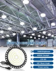 Super Bright UFO LED High Bay Lights: 100W high bay led shop lights is equipped with 135pcs 2835 LEDs, 6500K daylight, meanwhile led ufo high bay lights with high temperature resistant PC lens, high transmittance to achieve high brightness of 10000LM and 120° luminous angle, which provides you safe and stable illumination of a wide range. Energy Saving LED High Bay Lights: This 100W UFO LED high bay shop light is made of high quality SMD2835 LED chip, high brightness, color rendering index 80+, wide irradiation range, low light decay, no flicker. And commercial high bay LED light with high quality LED driver, stable performance, save up to 85% on your electricity bill. Excellent Heat Dissipation Performance UFO Lamp: ufo high bay led shop lights, die-cast aluminum lamp body design, strong insulation, rapid heat dissipation. Hollow out strong convection cooling structure, increase air contact area, efficient heat dissipation, protect the LED chip and driver, to ensure the long and stable operation of ufo high bay lights fixture. Easy & Quick Installation Commercial Bay Lights: high bay light fixture features a ready-to-plug standard US plug with 2m/6.5ft power cord makes the installation easy and fast. Without the need for cumbersome tools and complicated steps, making the plug in led shop lights the first choice for factories, warehouses and other places with high brightness lighting needs. Widely Application High Bay Lights: This IP65 waterproof UFO industrial high bay light fixture is made of dustproof and weatherproof die-casting aluminum, which can operate stably no matter the bad weather. ufo led high bay light fixture could be used in garage, workshop, factory, warehouse, pole barn, basement, gym, exhibition hall, shopping malls, stadium and anywhere that need light.