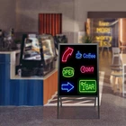 LED Message Writing Board Illuminated Erasable Lighted Chalkboard Menu Sign New Description Show your unique tagline for your store with this LED message writing board! It is a one-piece design, so it can be used without assembly requirements. With 8 color fluorescent markers, you can DIY the display contents freely. Besides, it comes with a controller and a remote control, which makes it easy to control and easy to adjust and combine the light effect among 7 light colors and 11 flashing modes, making your signs and logos more eye-catching and attractive. Key Features Made to Last: The product made of high-quality tempered glass and aluminum alloy with a welding process is strong, durable, and resistant to corrosion, deformation, and abrasion. Attention Catcher: The 23.62*31.5-inch writing surface is ideal for writing your notes, messages, memos, calendars, menus, reminders, and more. The combination of various fluorescent colors, 7 light colors, and 11 flashing modes will display your message in a vivid and eye-catching way and attract the attention of passers-by. Dual Power Types: It comes with a 6.56ft long power cord so that you can install it with more flexibility, or you can also choose to use the battery box which needs 8 AA batteries(not included) to use it without wire length limits. Two Control Methods: The product consists of a controller with a button to control the light color and a remote control to change the light color and flashing mode from a distance. You are free to choose the way you like. Easy to Carry: The lightweight(12.79 lbs) and foldable stand make it easy to be carried from one place to another. Simple Clean-up: The tempered glass writing panel and the equipped soft cloth make it convenient and easy for you to clean this product. One-piece Design: It allows you to use it directly after receiving it without assembly requirements, which saves you effort and time. Protective Package: To prevent the product from being damaged during transportation, we packed it with foam to protect your products to the maximum extent possible. Customer Service: We aim to provide quality products and services. If you have any problems, please feel free to contact us. We will reply and solve the problem for you as soon as possible. Details 8 Fluorescent Markers: These fluorescent markers with different colors allow you to freely create your favorite drawings, advertising writings, or daily menus on the boards and let your creativity run wild. Sturdy Feet: With four sturdy feet and a strong connection, the product can hold the board stably and prevent it from toppling. Application It is suitable for homes, weddings, restaurants, hotels, retail stores, shopping malls, supermarkets, clubs, nightclubs, bars, businesses, classrooms, cafes, special promotional decorations and special events, etc. It is a good substitute for party decorations, menu boards, electronic message boards, wedding decorative boards, digital signage, and so on. Specifications Color: Black Style: Modern Shape: Rectangular Material: Tempered Glass, Aluminum Alloy Process: Welding Assembly Required: No Mount Type: Free Standing Plug Type: US Standard Power Source: Battery Powered/Power Corded Battery Type: 8*AA Batteries(Not Included) Power Cord Length: 2m/6.56ft Panel Size: 60*80cm/23.62*31.5inch Product Overal Height: 120cm/47.24inch Packaging Size: 116*68.5*5.5cm/45.67*26.97*2.17inch Gross Weight: 6.3kg/13.89lbs Net Weight: 5.8kg/12.79lbs Package Included 1*LED Message Writing Board 8*Fluorescent Markers 1*Battry Box 1*Adapter 1*Remote Control 1*Controller 1*Soft Cloth 1*English Manual Notes Please check the size carefully before ordering. Please clean the marks with a dry cloth. Please allow the slight color difference caused by the shooting light and 1-3cm error due to manual measurement, and make sure you do not mind before you order. Payment Delivery details Terms of sales About us Contact us Payment We accept ebay payment 。 Fees such as import duties, taxes are not included in the item price or shipping costs. These charges are the buyer's responsibility. Delivery details Shipping: 2-9 working days to: USA Terms of sales We maintain high standards of excellence and strive for hundred percent customer satisfaction. Feedback is very important to us. We hope that you contact us immediately before you give neutral or negative feedback, so that we can address your concerns. It is impossible to address issues if we do not know about them! About us Your satis faction is our ultimate goal. We work hard to earn your trust and future business. Our certified technicians have tested each item before shipping. The unit comes with 1 year limited warranty on all manufacturing defects. a) If you receive a defective item, you may return it or ask for a discount. Please contact us within 14 days after you receive the package. b) What you returned must be intact and in its original packaging as re? u. Customer is responsible for shipping costs of the returned item. c) We will cover the cost of shipping back t with the shipping rate indicated in the registration page. We will send you a new unit or refund the full payment you paid. Thank you. Contact us Business Hour Business Hour: Monday To Friday: 8:30 AM to 5:00 PM (Beijing China time) Due to time zones, our reply to your questions may not be immediately. But within above working time, we will reply your email within 24 hours. If it's non-workdays, please kindly be patient and wait till Monday. Please contact us with ebay message. Please feel free to contact us if you have any questions. Monday To Friday: 8:30 AM to 5:00 PM (Beijing China time) Due to time zones, our reply to your questions may not be immediately. But within above working time, we will reply your email within 24 hours. If it's non-workdays, please kindly be patient and wait till Monday. Please contact us with ebay message. Please feel free to contact us if you have any questions. Brand Unbranded MPN N/A Typ