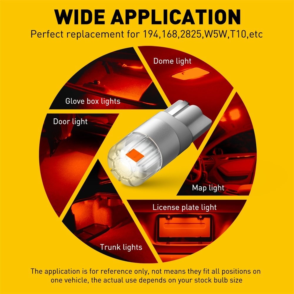 The compatible vehicle lists is only partial lists,no fully included due To Ebay listing compatible vehicles limitation. IF your car plug is T10/W5W/168??the item is fit your car Cross Reference:W5W 194 147 152 158 159 161 168 175 184 192 193 259 280 285 447 464 555 558 585 655 656 657 1250 1251 1252 2450 2652 2921 2825 906 579 ,etc. Feature: LED Inner Tail Light Bulbs Super Bright Red 2825 168 192 194 2821 T10 W5W 2~10X The compatible vehicle lists is only partial lists,no fully included due To Ebay listing compatible vehicles limitation. IF your car plug is T10/W5W/168 ??the item is fit your car Cross Reference: W5W 194 147 152 158 159 161 168 175 184 192 193 259 280 285 447 464 555 558 585 655 656 657 1250 1251 1252 2450 2652 2921 2825 906 579 ,etc. Feature: Application?? License plate light, Interior (Map, Dome, Cargo, Courtesy) Light??etc LED Chip??2pcs 3030 SMD High Lumen??146Lm/per bulb, 292LM/per Set Color Temperature??RED Waterproof Level??Waterproof & Shockproof Working Voltage??DC 9V to 18V Beam Type??360°Beam Angle, no dark spots Lifetime??More than 30000 hours Brightness: No dark spots, 300% Brighter Feature: Low consumption, New look, No polarity design, plug&play, easyinstallation. Just plug & play Canbus error free Size: as photo showed. CANBUS: YES, ERROR FREE, Just plug & play Package : 2X T10 168 194 led lights. Item Specifics Manufacturer Part Number 2US-T10-R2-EAA Interchange Part Number 152 159 921 906 280 285 2652 175 1250 558 585 655 Other Part Number Interior map dome license trunk parking glove box Placement on Vehicle Front, Rear, Left, Right Surface Finish 600% Brighter than normal 5050/3528 SMD LED bulbs Manufacturer Warranty 1 Year Light Color Red To Fit Side Tail Marker light Bulb Fitment Code W5W T10 Number of Bulbs 2 Type Globe Bulb Wattage 5W Brand AUXITO UPC 782890732659 MPN AUXITO2US2TT10 Payment Returns DESCRIPTION PAYMENT SHIPPING RETURN POLICY CONTACT US Shop Category Store Home LED Headlight ◈ H4 ◈ H13 LED Reverse Light ◈ T15/921/W16W LED License Plate Light LED Side Marker Light Car Parts & Accessories Tail Light assemblies Other Hot Item Picture New List Item LED 7443 7440 7444 4014 T20 Brake DRL Tail Light Safety Parking Warning Bulbs 2X USD 13.99 Passenger Side Window Power Door Switch Dodge Fits Ram 1500 2500 3500 2009 2010 USD 15.99 2pcs OXILAM LED License Plate Assembly Light Lamp For Ford F150 F250 F350 CN USD 28.49 10X 2825 Canbus License LED Plate Light Bulbs 168 194 T10 White 6000K Bulb Lamp USD 13.99 H11 LED Headlight Super Bright Bulbs 6000K White 330000LM HIGH/LOW BEAM NEW 2/4X USD 44.99 Help & Info Payment Policy Shipping Policy Return Policy FAQ About Us LED Inner Tail Light Bulbs Super Bright Red 2825 168 192 194 2821 T10 W5W 2~10X The compatible vehicle lists is only partial lists,no fully included due To Ebay listing compatible vehicles limitation. IF your car plug is T10/W5W/168 ??the item is fit your car Cross Reference: W5W 194 147 152 158 159 161 168 175 184 192 193 259 280 285 447 464 555 558 585 655 656 657 1250 1251 1252 2450 2652 2921 2825 906 579 ,etc. Feature: Application?? License plate light, Interior (Map, Dome, Cargo, Courtesy) Light??etc LED Chip??2pcs 3030 SMD High Lumen??146Lm/per bulb, 292LM/per Set Color Temperature??RED Waterproof Level??Waterproof & Shockproof Working Voltage??DC 9V to 18V Beam Type??360°Beam Angle, no dark spots Lifetime??More than 30000 hours Brightness: No dark spots, 300% Brighter Feature: Low consumption, New look, No polarity design, plug&play, easyinstallation. Just plug & play Canbus error free Size: as photo showed. CANBUS: YES, ERROR FREE, Just plug & play Package : 2X T10 168 194 led lights. Payment Returns All rights reserved. On Aug 8, 2025 at 16:31:20 PDT, seller added the following information: