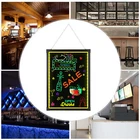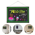 Illuminated LED Message Writing Board Specification Material: Tempered Glass, Aluminum Alloy, PP Color: Black Light Source: LED(5050) Plug: US Standard Power: 0.36W Voltage: AC110-240V DC12V 1A Power Supply: Plug-in/8*AA Batteries(Not Included) Light Colors: Red, Green, Purple, Yellow, Pink, Blue, White Fluorescent Colors: Red, Green, Purple, Yellow, Pink, Blue, White, Orange Number of Light Effects: 18 Length of Power Cord: 2m/6.56ft Working Temperature: -40~60℃/-40-140℉ Product Size: 50*70cm/20*28in 40*60cm/16*24in 60*80cm/24*32in Package Included 1x Led Writing Board 8x Fluorescent Pens 1x Remote Control 1x USB Controller 1x Cloth 1x Clear Chain 1x Power Cord with Plug 1x English User Manual LED Light Up Writing Board Flashing Illuminated Message Menu Sign Board 3-Size Description Description This LED message writing board with 7 color variations and 18 combinations of light effects can attract customers' attention with its eye-catching highlighter and brilliant light effects to bring excellent promotional effects. Such an innovative and unique promotion assistant is a must-have for milk tea stores, bars, and restaurants. Specification Material: Tempered Glass, Aluminum Alloy, PP Color: Black Light Source: LED(5050) Plug: US Standard Power: 0.36W Voltage: AC110-240V DC12V 1A Power Supply: Plug-in/8*AA Batteries(Not Included) Light Colors: Red, Green, Purple, Yellow, Pink, Blue, White Fluorescent Colors: Red, Green, Purple, Yellow, Pink, Blue, White, Orange Number of Light Effects: 18 Length of Power Cord: 2m/6.56ft Working Temperature: -40~60℃/-40-140℉ Type Middle Size Small size Large Size Size 50*70cm/20*28in 40*60cm/16*24in 60*80cm/24*32in Package Size 77.8*59*5.5cm/30.62*23.22*2.16in 66*48.5*5.5cm/25.98*19.09*2.16in 86.5*59*5.5cm/34.05*23.22*2.16in Gross Weight 4kg/7.71lbs 3kg/6.61lbs 5.5kg/12.12lbs Net Weight 3.5kg/7.71lbs 2.5kg/5.51lbs 5kg/11.02lbs Package Included 1x Led Writing Board 8x Fluorescent Pens 1x Remote Control 1x USB Controller 1x Cloth 1x Clear Chain 1x Power Cord with Plug 1x English User Manual Key Features High-quality Materials : This LED message writing board is made of a white translucent tempered glass panel, aluminum alloy frame, and PP back panel. These high hardness and impact-resistant materials make the product sturdy and durable. Convenient and Harmless : The included highlighter will be wiped clean easily without dirt and dust keeping you away from the harmful chalk dust of traditional chalk, which is more healthy and convenient. Impressive and Attractive : The product features 7 colors of light and 18 combinations to bring you a dynamic, colorful and attention-catching display to attract more customers' attention for you. The black PP back panel contrasts with the colorful highlighter and light effect, presenting a visual feast. Energy-saving and Environmental Friendly : The product's power of only 0.36 watts makes it more energy-saving and environmentally friendly as it does not consume too much power even for long-time use. The long-life, recyclable LED light source is more eco-friendly. DIY Fun : Equipped with eight colors of highlighters and an easy-to-wipe glass panel, the message writing board is also an ideal tool for drawing and doodling. Travel with your child to the ideal kingdom of imagination and color! Large Area : The enlarged LED message writing board (3 sizes) provides you with enough space to write slogans, prices, products, and other content to attract customers. And the larger layout with gorgeous lighting is more eye-catching. Simple Operation : The product is equipped with a remote control that allows you to adjust the light color and combination of light effects with just one click, which is very convenient and flexible. Dual Power Supply : The product can be powered by both a power cord and battery to suit different scenes indoors and outdoors. Multi-functional : This LED message writing board is a good substitute for conventional blackboard, teaching board, party decoration, electronic message board, light-up whiteboard, wedding decoration board, digital signage, etc. Protective Packaging : The product is carefully packed in cardboard boxes to avoid damage during transportation. The protective packaging allows the product to reach you intact. Customer Service : We aim to provide quality products and services. If you have any problems, please feel free to contact us. We will reply and solve the problem for you as soon as possible. Details Hooks : Both sides of the product are equipped with hooks to allow you to hang it horizontally and vertically to present different effects. Anti-collision Corners : The four corners of the product are equipped with anti-collision protectors to effectively prevent collisions. Transparent Chain : Transparent chain with hooks allows you to hang the writing board easily. Controller : Connect the controller to the LED board, and adjust the light by pressing the button above. When using the remote control, you can adjust the light and switch by pointing at the controller. Application This product is used for decoration, billboards, blackboards, etc. at home, in shops, bars, restaurants, etc. How to Use the Fluorescent Pen 1. Cover the pen with the cap and shake it up and down several times to make the ink flow more smoothly. 2. Press the pen tip up and down against the contact surface. 3. The pen is ready to write when the ink comes out. 4. Please remember to cover the pen after use to prevent staining elsewhere. Notes Wiping with a towel dipped in water is not recommended. Please use the included cleaning cloth. Please read the user manual carefully before use. Please note that the batteries are not included because of aviation safety policy, you need to prepare eight AA batteries. Please allow the slight color difference caused by the shooting light and 1-3cm error due to manual measurement. Please make sure you do not mind before you order. Welcome to the yiyiukmall ! We are committed to 