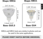 Store New Arrivals Add to Favorite View Feedback Contact LED MR11 Flood Light Bulbs (4 Pack) 12V 3W 20W Halogen 2-Pin 240Lm for Landscape, Accent, Track Lights, and Christmas Tree Fiber Optics, GU4 Bi-Pin Base, 5000K Daylight Description Item model number SL-3MR11D Light Source Type LED Number of Items 4 Power Source DC Power Supply Incandescent Equivalent Wattage 20 Watts Country of Origin China Bulb Diameter 1.38 Inches Specification Met California Title 20, CE, RoHS Controller Type Push Button Unit Count 4.0 Count Batteries Required? No Light Type LED Bulb Shape Size MR11 Average Life 30000 Hours Product Dimensions 1.38"W x 1.38"H Material Glass Efficiency high Specific Uses For Product General purpose Batteries Included? No Item Package Quantity 4 Bulb Features Not Dimmable White Brightness 240 Lumens Indoor/Outdoor Usage Outdoor, Indoor Light Source Wattage 3 Watts Brightness 240 Lumen Bulb Length 1.38 Inches Light Color 5000K Daylight Item Weight 2.89 ounces Connectivity Technology Normal bulb Special Features ✶ LED MR11 Reflector Light Bulbs ✶ Glass Reflector, No Cover ✶ 3W, 20W Halogen Replacement ✶ 240lm High Output ✶ GU4 2-Pin Base ✶ 12V Low Voltage A/C or D/C ✶ 120° Beam Angle ✶ 5000K Daylight (Bright White) ✶ CRI 80+ ✶ Instant On ✶ No Mercury, No UV/IR ✶ Non-Dimmable ✶ Up to 30,000 hours Lifespan ✶ California Title 20 Certified ✶ CE and RoHS Compliant ✶ 2-Year Warranty ✶ Pack of 4 Special Feature function(f) {var _np=(window.P._namespace("DetailPageProductOverviewTemplatesJava"));if(_np.guardFatal){_np.guardFatal(f)(_np);}else{f(_np);}}(function(P) { P.when('A').execute(function(A){ A.on('a:truncate:po-attribute-truncate-2:updated', function(data) { var isTruncated = !data.truncateInstance.getIfTextFits(); var seeMoreElement = document.getElementById('po-attribute-see-more-id-2'); if(seeMoreElement) { seeMoreElement.style.display = isTruncated ? '' : 'none'; } }) }); })); ✶ LED MR11 Reflector Light Bulbs ✶ Glass Reflector, No Cover ✶ 3W, 20W Halogen Replacement ✶ 240lm High Output ✶ GU4 2-Pin Base ✶ 12V Low Voltage A/C or D/C ✶ 120° Beam Angle ✶ 5000K Daylight (Bright White) ✶ CRI 80+ ✶ Instant On ✶ No Mercury, No UV/IR ✶ Non-Dimmable ✶ Up to 30,000 hours Lifespan ✶ California Title 20 Certified ✶ CE and RoHS Compliant ✶ 2-Year Warranty ✶ Pack of 4 See more Color Rendering Index 85.00 Part Number LED-3MR11ND-D4PC Color Temperature 5000 Kelvin Color 5000k Daylight Wattage 3 watts Package Dimensions 3.19 x 3.19 x 2.32 inches; 2.89 ounces Bulb Base GU4 Shape MR11 Reflector Power Consumption 3 Watts Voltage 12 Volts Control Method App Beam Angle 120 Degrees HIGH OUTPUT LED BULB: 3 Watt, 240 Lumens, 20 Watt Halogen Equivalent. High Quality SMD LED Chips. Low Voltage: 12V A/C or D/C ENERGY SAVING LONG LIFESPAN: 85% Energy Saving, Reduced Average Household Energy Costs to only $0.40 per Year! Lifespan of 30,000 Hours, 27 Years with 3 Hour Daily Use. California Title 20 Certified EXCELLENT LIGHTING OUTPUT: Floodlight 120° Wide Beam Angle. 5000K Day Light (Bluish Bright White). CRI 80+. Instant On. No Mercury. No UV/IR Light. Not Dimmable MANY LIGHTING APPLICATIONS: Often used for Landscape Lighting, Accent, Ceiling, Track Lighting, Fiber Optics Christmas Tree Bulb , Indoor and Outdoor Flood Light DURABLE AND STANDARD SIZE: Diameter: 1.38” (35mm), Length: 1.38” (35mm), Shape: MR 11 Reflector FTD, Base: GU4 Bipin (4mm or 0.16” between 2 Pins). Pack of 4 HIGH QUALITY AND SAFE: CE and RoHS (Lead Free) Compliant. Glass Body. No Cover Glass 2 YEAR WARRANTY Product Description Important Facts on Shopping for LED Light Bulbs: When shopping for light bulbs, please DO NOT go by the listing photos, as the photos cannot give you an accurate match. Instead, please verify the light bulb dimensions, shape code, base, voltage, and wattage all match the type you are replacing. Please also DO NOT go by the applications listed in the listing. There are many variations of light bulbs used for the same application. So, please make sure to make the right match prior to order. To avoid flicker, please try to use LED transformers. If flickering occurs using a halogen transformer, please add 1-3 halogen light bulbs to help stabilize the circuit, because the LEDs consume too little wattage for the system to work properly. Please be advised in general LED light bulbs are not designed to be left on all night long every day. Extended hours of use every day will dramatically shorten the lifespan of most LED light bulbs due to overheating the LED chips. Guide on Buying the Correct LED Light Bulbs: Base, Shape and Dimensions Base: GU4 Bi-Pin with 4mm distance between the 2 pins Shape: MR11 Mini Reflector Diameter: 1.38 inches Length: 1.38 inches Please make sure the light bulb base matches what your light fixture has. Another common reflector light bulb with 2 pins is MR16 GU5.3, which looks very similar to MR11 in the photos but are much larger, with a reflector diameter of 2.0" and pin distance of 5.3mm. Ple