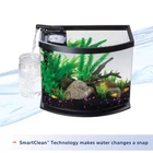 LED MiniBows Kits with SmartClean Technology are great for first time and experienced fish keepers. These desktop aquariums are great for bedrooms, living rooms, home offices and more. Each kit includes a clear acrylic vessel, low-profile LED hood, elevated base, filter cartridge, water care and food samples, and an illustrated setup guide to get you started. Also included is a uniquely designed power filter with SmartClean Technology that makes essential water changes quick, fast and easy to do in less than 2 minutes! In just three easy steps and a couple minutes each week helps maintain a cleaner and healthy aquatic environment with LED MiniBow Kits with SmartClean Technology. This aquarium kit is the perfect home for Betta or small tropical fish. The filter uses Small Cartridges. Replace cartridges every 4 weeks for optimal performance. Available in different color and size tanks. Equipped with SmartClean(TM) Technology to perform water changes in less than 2 minute Improve water quality for a happy, healthy fish Includes aquarium vessel, hood and elevated base, power filter, small filter cartridge, fish food, water conditioner and setup guide Great home for small fish For first time and experience fish keepers of all ages Uses Small Cartridge