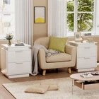 End Table with LED Light, Night Stand with Drawers, Storage Space with Doors, Nightstands Set of 2, for Living Room and Bedroom, White Feature: Illuminate Your Space with Style: The Ultimate Bedside Table with Adjustable LED Lights & Sleek Design! Specification Color: White Material: Wood, etc Package Dimensions:22.44"(L) x 19.69"(W) x 15.35"(H) Package includes: 2 End Tables A tool kit A manual of installation and usage Notice: There may be some differences between photos and items in term of color because the influence of lighting during the shooting or the settings of the computers’ display screen. Kick up your bedtime routine with this bedside table that features an integrated LED light strip! It boasts 7 adjustable colors to set the perfect mood, plus you can tweak the brightness levels and even control the blinking speed for a truly customizable vibe. Built to last, this nightstand comes with a sturdy base that ensures it stays put, no matter how many late-night reads you have. The top surface can handle up to 198 pounds, while the drawer can safely support 22 pounds of your bedtime essentials. Versatile and chic, this bedside table is a perfect fit for your living room, bedroom, home office, or any space that needs a stylish storage solution with a hint of ambiance lighting. It's not just functional; it's a versatile addition to any room in your house! Say hello to style with its wavy drawer front – a trendy touch that adds a modern flair to your décor. This isn't just a bedside table; it's a fashion statement! Assembly is a breeze thanks to the included instructions and all necessary tools. No need to rummage through your toolbox or search for extra parts – everything you need is right here, making setup a snap.