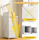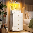 【Large Storage Capacity Dresser】The LED dresser can make it easy to organize your essentials with 6 drawer dresser for bedroom.The higher size 51.2"H*20.8"L*11.8"W,including 4 large and 2 small drawers, offering large space for men women students for personal belongings neatly stored and easily accessible. 【Multipurpose Storage Aesthetics】The upgraded bedroom dresser surpasses conventional designs also incorporating 2 display shelves and a practical grid. The shelf platforms act as mini stages, ideally exhibiting your greenery, artistic decorations, infusing vitality and personality into your living space; meanwhile, the adaptable grid serves as a perfect haven for daily essentials like keys, bags, and photos, ensuring effortless accessibility. This chest of drawers for bedroom it as an embellishment in the living room hallway, a helpful aide in the entryway, or a private storage hub in the bedroom—fulfilling your versatile organizational needs with elegance and functionality. 【Intelligent RGB LED Dresser】Embedded with an RGB light strip, this dresser organizer offers 21 static color options and 22 dynamic modes, along with adjustable brightness. Explore the possibilities to tailor the illumination according to your mood and surroundings, adjusting the brightness, color, and pattern freely. This LED bedroom furniture becomes a standout feature in your bedroom, infusing it with a touch of technology and an ambiance of sophistication. 【Sturdy and Durable Construction】Crafted with premium metal materials, this black dresser has a mainframe designed to stand the test of time. Its specially reinforced X-shaped crossbars at the back significantly enhance load-bearing capacity and structural stability. Attention to detail extends to the sides, where 2 robust metal rods are added, further reinforcing the smooth gliding of drawers and overall sturdiness. Of particular note is the thoughtfully engineered anti-tip mechanism, effectively preventing accidents and keeping a safe usage, ensuring a worry-free user experience. 【Easy Assembly】The clothes organizer comes with assembly tools included in the package, enabling you to easily complete the setup process by following the provided installation instructions. It seamlessly combines functionality with aesthetics, making it an excellent gift choice. Product Description Upgraded Bedroom Dresser 2 Top Shelf & 1 Steel Grid for Seting Decorationes and Temporary Supplies:greenery,clock ,photos,glasses,keys 2 Medium & 4 Large Drawe for Storaging Household and Clothes:jewelry,wallets,skincare,dolls,beddings,blankets,Linens Intelligent RGB LED Dresser Personalized Lighting to Suit Different Situations Adjust the color and mode of the lights to match different mood , whether you're relaxing in the bedroom, gaming in the living room, greeting guests at the entryway,hallway or reading in the studyroom High Quality Frabic Drawer Carefully crafted with high-quality fabric materials to provide a safer and more reliable storage environment for your clothes Durable Wood Choice of Premium Wood Planks for Long-lasting Durability Delicate Handles Sophisticated Handles for Seamless Pull-Out and Elegant Aesthetics Adjustable Feet Adjustable Feet for Versatility in Various Settings.Suitable for bedrooms, living rooms, hallways, entryways, and more. Sturdy Dresser With X-Support Bar and Thick Metal Frame Similar Dressers Add to Cart Add to Cart Customer Reviews 4.1 out of 5 stars 43 4.4 out of 5 stars 1,142 3.5 out of 5 stars 64 3.8 out of 5 stars 19 Price $69.99 $ 69 . 99 — — $49.99 $ 49 . 99 Drawers 6 12 12 4 Led ✔ ✘ ✔ ✔ Charging Station ✘ ✘ ✔ ✔ Size 11.75"D x 21"W x 51.3"H 12"D x 35"W x 52"H 13.81"D x 63.11"W x 29.61"H 11.8"D x 15.79"W x 32.1"H Material Metal+Fabric Metal+Fabric Metal+Fabric Metal+Fabric