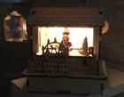 This New unused LED Wooden Cut Out Christmas Tabletop Decoration will have a Christmas Shop with a sales person attending the shop selling Christmas related items and toys. It will be battery operated and would made a nice desktop Holiday decoration. It will measure 5" tall x 4" wide x 3 3/4" deep. It will be made of high quality wood and has exquisite details.