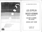BEAUTIFUL ORIGINAL CONCERT PROGRAM FROM BILL GRAHAM'S FABLED FILLMORE EAST IN NEW YORK CITY FROM MAY 1969 THIS PROGRAM IS FOR LED ZEPPELIN, WOODY HERMAN ORCHESTRA AND DELANEY & BONNIE & FRIENDS (BEFORE ERIC CLAPTON TOURED WITH THEM) HAS GREAT UPCOMING SHOW ADS (THE WHO, GRATEFUL DEAD, JEFF BECK JEFFERSON AIRPLANE, CREEDENCE, CSN AND MORE) AND PERIOD ADS FOR STORES AND ALBUMS AS WELL - GREAT 1960'S COLLECTIBLE VERY GOOD CONDITION (HAS SOME HANDLING AND SOILING ON COVERS) GUARANTEED AUTHENTIC - ITEM GUARANTEED AS DESCRIBED - (PLEASE SEE MY FEEDBACK PROFILE - MUCHO POSITIVE SATISFACTION RATING !!!) - -BUYER PAYS SHIPPING CHARGES (I use USPS and Insurance COST $ 8.00 ----)- SHIPPING OCCURS WITHIN TWO DAYS OF YOUR PAYMENT - - PLEASE FEEL FREE TO E-MAIL ME WITH ANY QUESTIONS PRIOR TO BUYING - -- PLEASE CHECK MY "ME" PAGE PLEASE SEE MY OTHER AUCTIONS FOR MORE ORIGINAL 1960'S - 70'S ROCK AND ROLL MEMORABILIA............................ THANKS AND STAY IN TOUCH