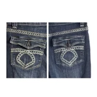 LEE Platinum Label Western Boho Distressed Bootcut Prairie Rodeo Jeans Secretly Slender / Barely Bootcut : Size : 8M Measurements : Refer To Picture # 2 : Condition : Good Pre-Owned ( No Odors / No Stains ) : Color : Blue Denim / Light Stone-Wash Accents ( Front & Back ) Materials ( per tag ) : Cotton & Spandex : Features ( See All Pictures ) : - Geometric Yarn Stitching Accents & Trim - Bronze Colored Metal Buttons with Star Accents : ?? Questions : Please Message Me Before Purchase ?? : Thank you for your interest. : Shipping : - Garment will be securely packaged in a polymailer . - Mailed Within 3 BUSINESS DAYS .