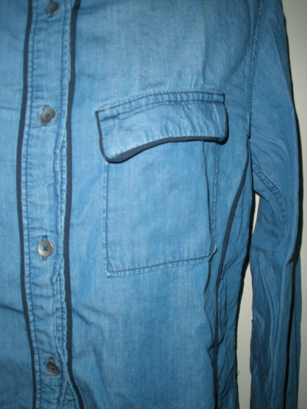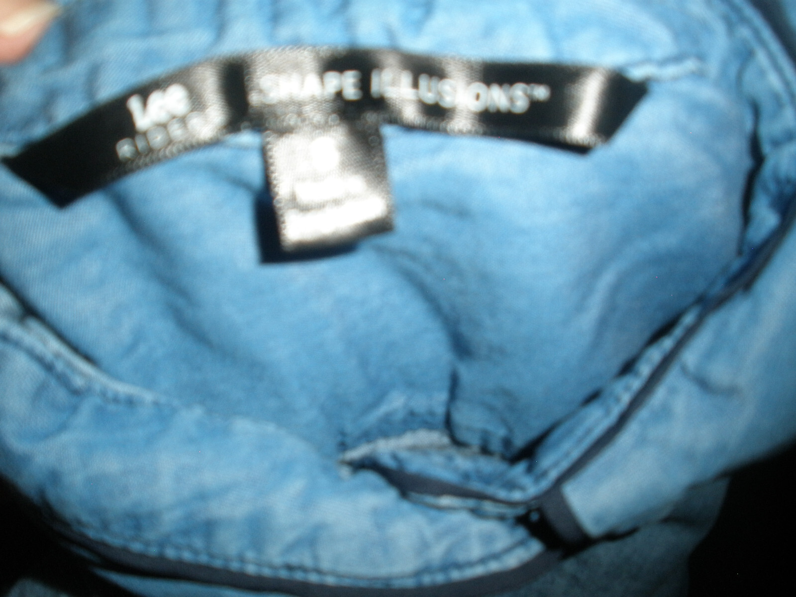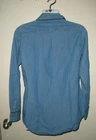 this is for a Lee Riders Denim Top It is preowned, It has no rips, tears or stains. IT is made of cotton The shirt is blue. Lee Riders calls it shape Illusions. It has light to medium wash. IT buttons down the front. IT has long sleeves. It has two front pockets that snap close. It is trimmed in a darker blue. It measures armpit to armpit laying flat is 18". It measures down the back is 27". IT is a size Small Manufacturers sizing's due vary please check measurements. If you have any questions or problems - before or after. Please message me.