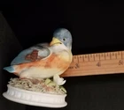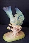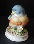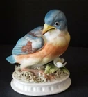 Two HANDPAINTED VINTAGE FIGURINES - one is " EASTERN BLUE BIRD" LEFTON PORCELAIN CHINA # KW1637, and the other is simply stamped "BLUE BIRD" Both marked made in "Japan" These cheery and adorable little birds will surely bring a smile to your face! The Eastern Bluebird is bottom stamped Lefton China - Porcelain. These are both hand painted and in very good condition. Please see all photos for complete description, details, and measurements. The bird figurine with the Lefton China foil label, measures approximately 3.5” tall x 3.25” wide. The other handpainted bird figurine is 4 inches tall. Ships USPS Priority Mail