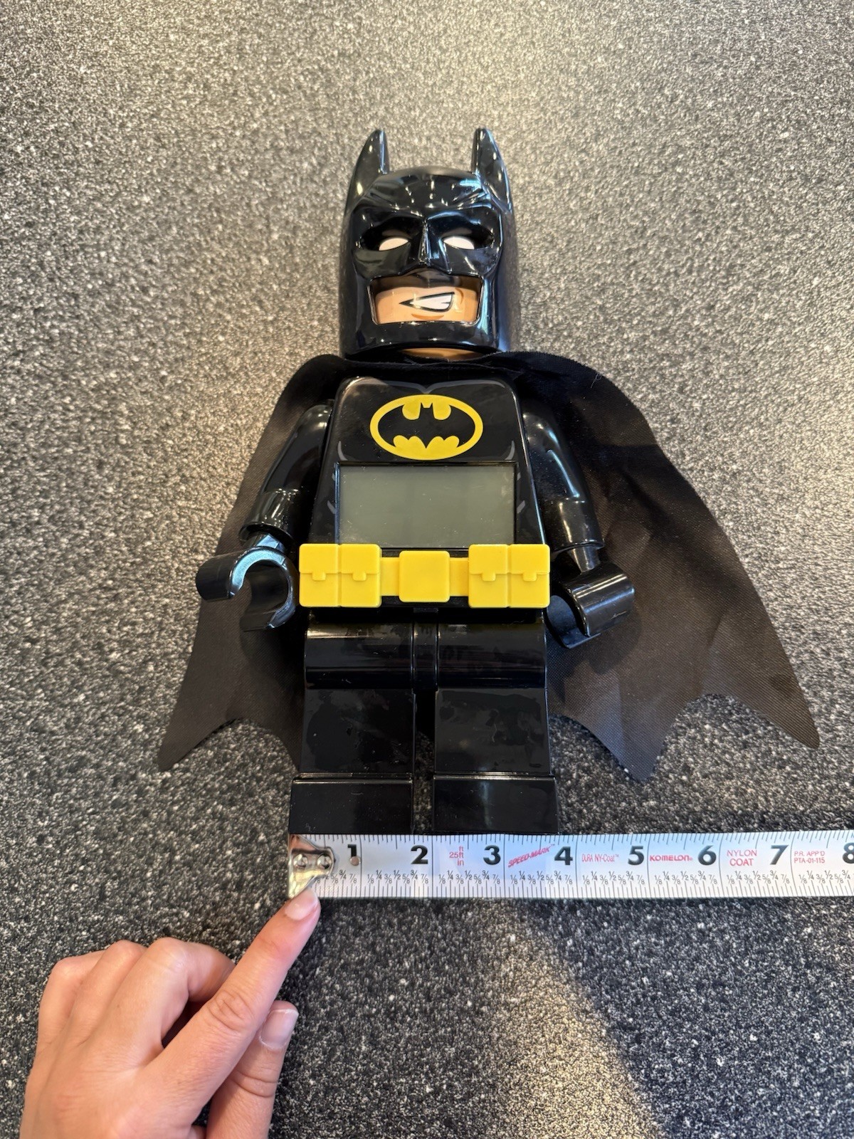 The LEGO Batman Movie Minifigure Alarm Clock (9009327) is a unique and fun way to wake up in the morning. This plastic alarm clock features Batman in his iconic LEGO form, making it a must-have for any fan of the superhero. The clock's dimensions of 11.02 inches in length, 10.43 inches in height, and 13.19 inches in width make it a striking addition to any room. With its electronic features and Batman theme, this LEGO set is perfect for fans of the character and the popular LEGO brand.