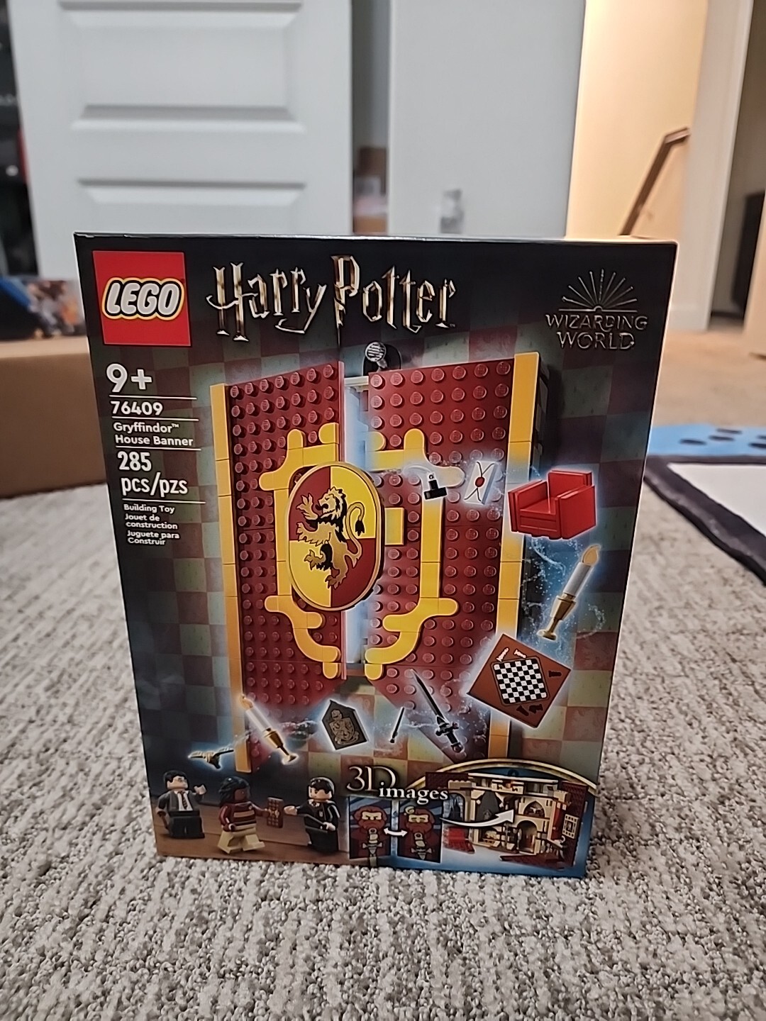 The LEGO Harry Potter Gryffindor House Banner (76409) set was released in 2023 and is now retired. This set includes a Gryffindor house banner build with dimensions of 11.02 x 2.5 x 7.83 inches. It is recommended for ages 9 and up.