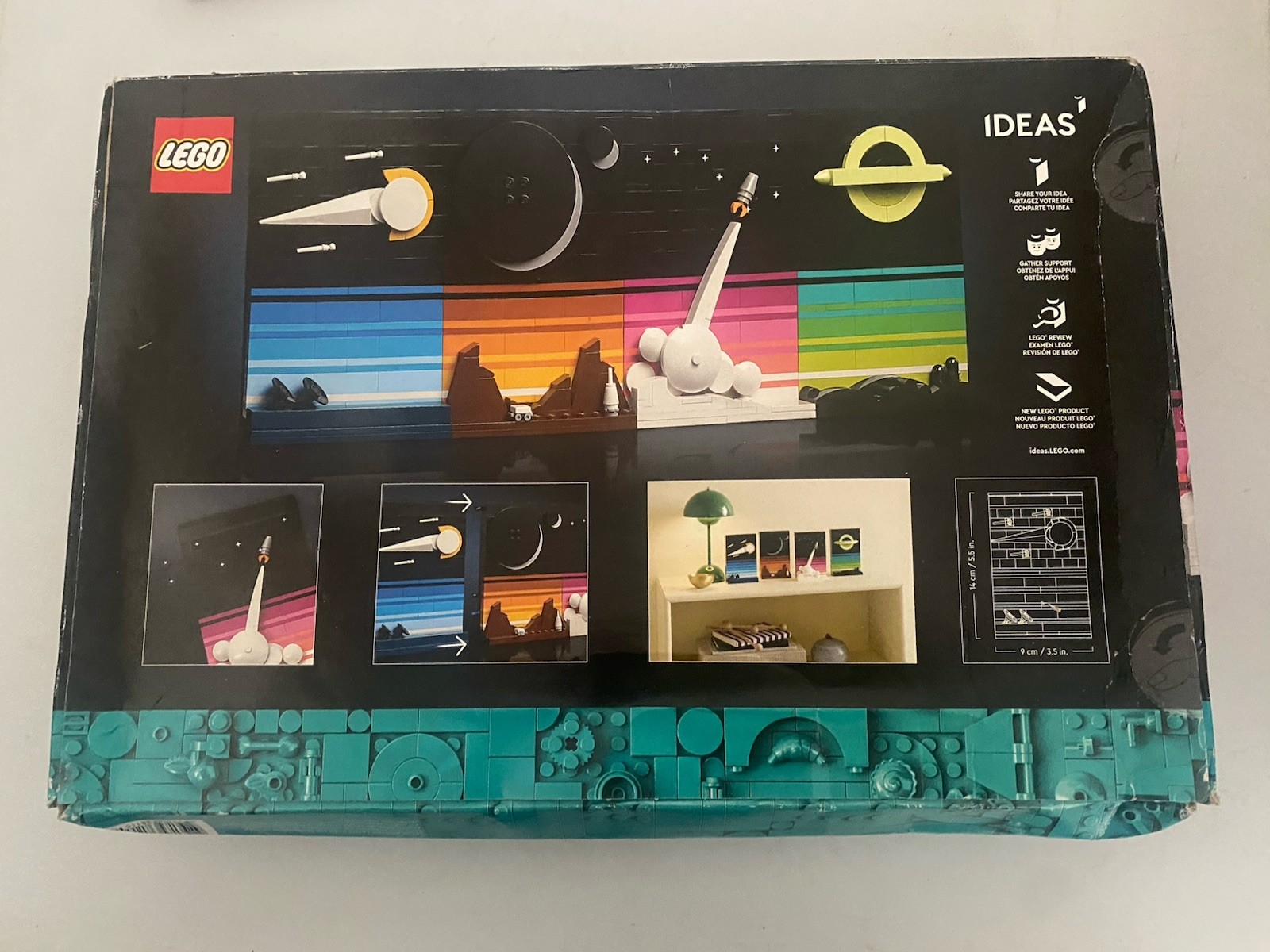Goodbye planet Earth. Hello endless possibilities. Celebrate the dreams and reality of space exploration as you build 3D postcards inspired by 1980s sci-fi myths movies books and posters. Construct graphic images of a space shuttle moon base black hole lunar eclipse different star constellations and more. Display the 4 postcards separately or connect them to create a stellar centerpiece.