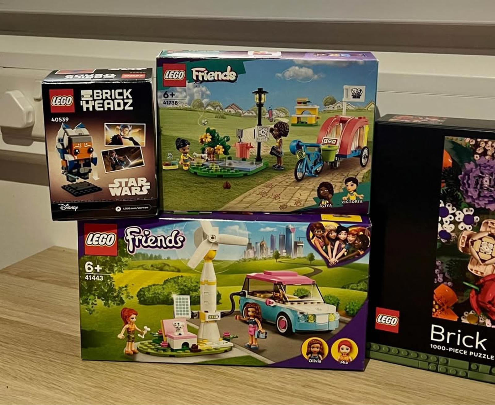 Selling a mixed bundle of brand new, factory sealed LEGO items. All sets are unused, unopened, and in excellent condition, exactly as shown in the photos. Great for gifts, collectors, or LEGO fans of all ages. Included in this bundle: • LEGO Marvel 76243 – Rocket Mech Armour (6+) ×2 sets • LEGO Marvel Eternals 76145 – Eternals’ Aerial Assault (7+) ×2 sets • LEGO Star Wars 75344 – Boba Fett’s Starship™ Microfighter (6+) • LEGO Friends 41738 – Dog Rescue Bike (6+) • LEGO Friends 41443 – Olivia’s Electric Car (6+) • LEGO DOTS 41930 – Narwhal Bag Tag • LEGO BrickHeadz 40539 – Ahsoka Tano™ (Star Wars) • LEGO Brick Botanicals – 1000-Piece Puzzle All items are brand new and sealed.