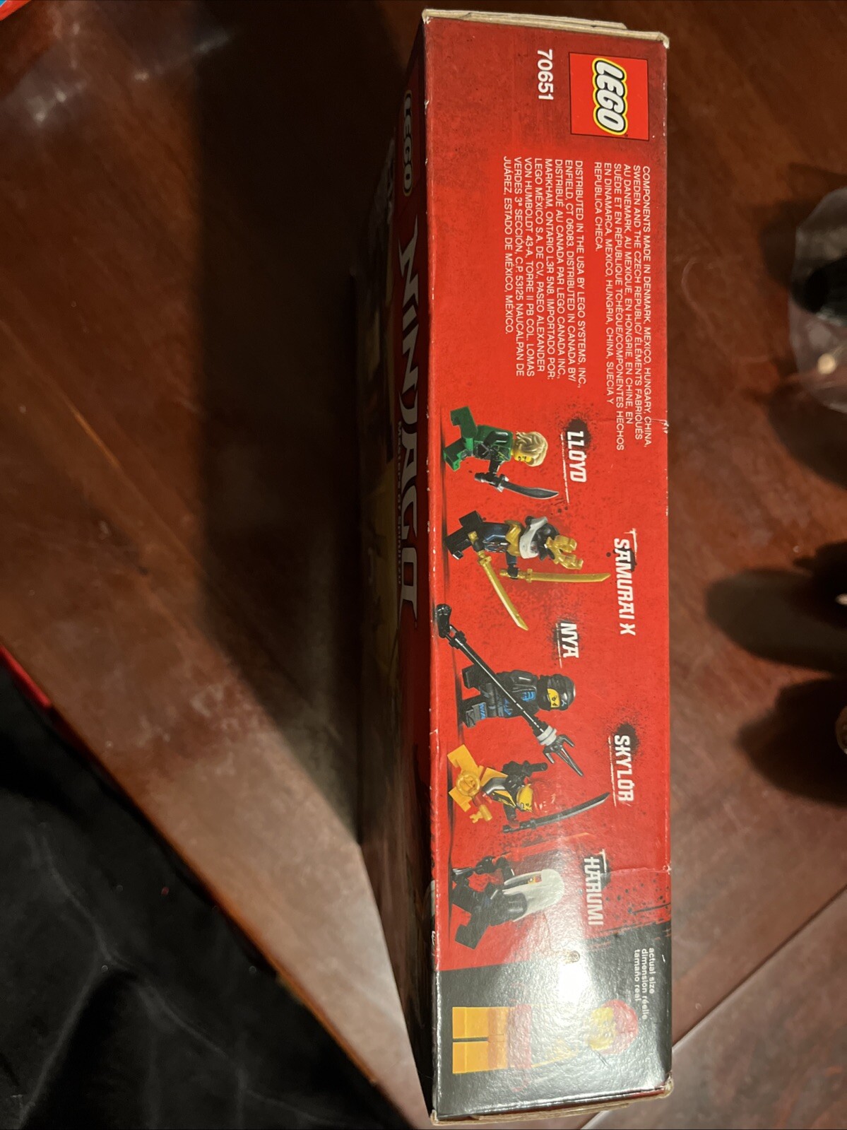 This LEGO NINJAGO set is awesome—packed with cool minifigures and a detailed throne room for epic battles! The box has minor wear but everything inside is untouched and ready to build. Just keep small pieces away from little ones. Super fun for fans of the show!