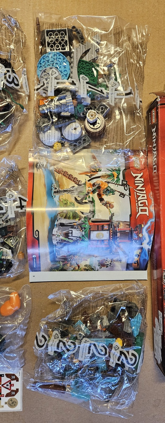 Number of Sealed lego parts bags: 4 1 big mini figure sealed bag 1 unused sticker sheet 1 instruction booklet So the set is complete but the lego box is open and has wear. Please see pictures. Everything Will ship in original box as is. Will.ship in a shipping box. Thanks