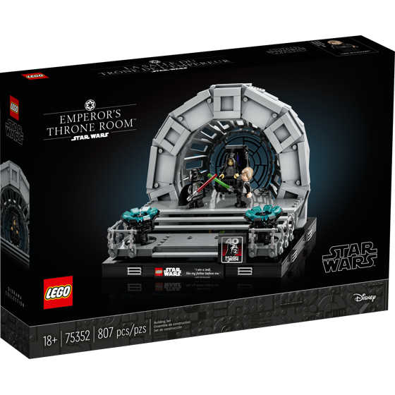 Summon the Force to recreate the climactic lightsaber duel from Star Wars: Return of the Jedi. Build the Emperor�s throne room complete with a Death Star window and rotating throne. Darth Vader and Luke Skywalker�s lightsabers and Emperor Palpatine�s Sith lightning bolts add to the drama. A plaque marking the 40th anniversary of Star Wars: Return of the Jedi completes an epic centerpiece.