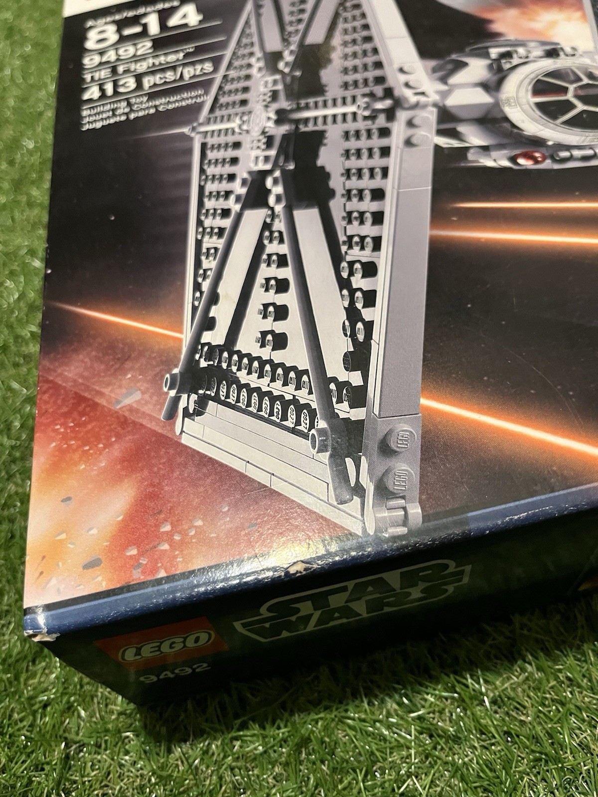 This is a LEGO Star Wars TIE Fighter set (9492) with 413 pieces. It is a complete set that was released in 2012 and retired in 2013. The set features figures of Star Wars characters and is suitable for ages 8-14. The item is made of plastic and comes in its original box. The set is part of the Star Wars theme and has a length of 13.9 inches, a height of 2.8 inches, and a width of 14.9 inches.