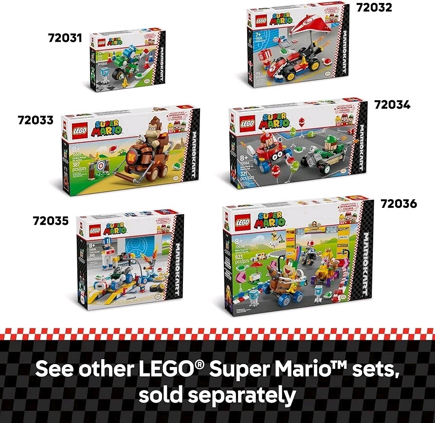 LEGO Super Mario: Mario Kart Donkey Kong & DK Jumbo - Collectible Toy Building Set for Kids, Boys and Girls, Ages 8+ - Nintendo Donkey Kong and Mario Kart Toy for Fans - Gift Idea - 72033 ●SUPER MARIO KART COLLECTIBLE – Kids can race to the finish line while aiming for targets with the help of Donkey Kong on his DK Jumbo ●DONKEY KONG TOY – This toy playset includes a Donkey Kong figure, plus a banana with face decorations ●MARIO KART TOY – Place Donkey Kong on his DK Jumbo kart, drive and drift, and launch shells at the target to knock the banana off ●INTERACTIVE DIGITAL PLAY – Ride the DK Jumbo with LEGO Mario (71439), LEGO Luigi (71440) or LEGO Peach figure (71441) (figures not included) to trigger Donkey Kong game sound and visual effects, plus other Mario Kart sounds ●GIFT FOR SUPER MARIO FANS – Kids ages 8 and up will love this playset as a holiday or birthday gift ●DIMENSIONS – This building set measures over 3.5 in. (8 cm) high, 3 in. (7 cm) wide and 6 in. (15 cm) long Thank you for your order!