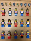 Logo lot- Castle minifigures. vintage lion knight crusaders, horses, bards, flag