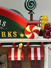 This is a large and asymmetrical Christmas Village Candy Factory made by Lemax in 2016. It features a whimsical candy factory with Santa, candy, and elf characters. The village comes with lights, music, and animation features, making it perfect for creating a festive atmosphere in any room. The village is made of mixed materials with a painted finish and comes in its original box. It is part of the Lemax Christmas Collection and would make a great addition to any holiday display. Absolutely incredible pristine condition. Lights, music , sound, motion ! Comes in original clean packaging including a/c cord . Just a beautiful whimsical piece to add to any village collection! Perfect condition! Comes in a very large box .