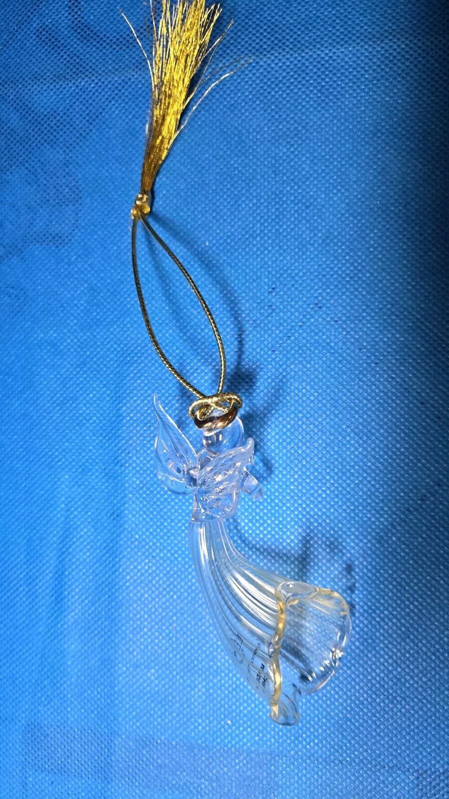 This LENOX Blown Glass Angel Ornament is a beautiful addition to holiday decor, featuring a clear hand-blown glass design of a praying angel. Measuring 3 inches in size, this delicate ornament is part of the Angel collection and is perfect for adding a touch of elegance to any Christmas tree. The ornamental piece is highly decorative and embodies a holiday theme, making it a charming collectible for festive occasions.