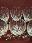 Description: For sale are 8 lovely water glasses from Mikasa are in the Firelight Gold pattern. These glasses measure 8-5/8” tall and 3-1/8” in diameter at the rim. These exceptionally clear crystal glasses have a thin stem, a cut bowl and a gold rim. Holds 7 ounces very comfortably. Discontinued pattern, having been made 1987-2010. Condition : No chips, cracks or flea bites. Lovely clarity. Please review the pictures closely as they are part of the description. I apologize ahead of time for the cost of shipping. I only ship USPS Priority insured. International shipping is thru the Ebay global shipping program only. I do want buyers to be happy. If the item you receive is damaged, please contact me as I almost always send insured. If you did not find the item to your liking, please make sure that you package the item carefully and insure the item when sending back to me. As I am between 2 houses, please contact me beforehand to confirm the return address. I will refund your purchase price upon receipt of an item received in same conditio