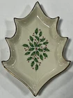 LENOX HOLIDAY HOLLY LEAF DISH - HOLLY & BERRIES A FINE LENOX HOLLY LEAF TRINKET DISH IN THE "HOLIDAY" PATTERN. IT FEATURES A HOLLY PATTERN AND GOLD RIMS. ESTATE FRESH, NICE USED CONDITION. MEASURES 6.75" IN LENGTH. MARKED AS SHOWN. ALL ITEMS ARE PRE-OWNED AND AS SUCH MAY SHOW SOME SIGNS OF PREVIOUS USE SUCH AS MINOR MARKS AND BLEMISHES. PLEASE CONTACT US IF YOU WISH A MORE DETAILED DESCRIPTION OF A PARTICULAR ITEM.