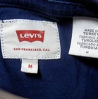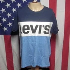 LEVI STRAUSS med tee Throwback Stripes old-school sexy T shirt tri-tone Levis This is a previously-owned, adult-medium (M), blue and white striped T-shirt with “Levi’s” printed on the front in bold, block letters. It measures approximately 21 inches (from underarm seam to underarm seam), about 25½ inches from back collar to bottom, and is in good condition, though there is a small mark on the neck – see picture (Levi’s brand, 100% cotton). Powered by SixBit's eCommerce Solution