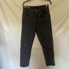 Black wash Levi's 501 Button Fly Bling Front High Rise Jeans With Crystals and Studs 5 pocket, button fly, grayish color Good pre-owned condition, front is jeweled all over, back is plain, Sold as pictured. See pictures for details Every effort has been made to include photos of any imperfections. Size 26x26 99% Cotton 1% Spandex Approximate measurements: Waist (laid flat): 14.5 Rise: 11" Inseam: 26"
