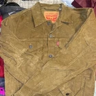 Elevate your style with this brown corduroy trucker jacket from Levi's. The jacket features a button closure and a regular fit, making it perfect for any casual occasion. The cotton blend outer shell material provides comfort and durability, while the solid pattern and Levi's Trucker model add a touch of sophistication to your look. This jacket is versatile and suitable for all seasons, making it a must-have addition to your wardrobe. Whether you're running errands or heading out for a night out, this Levi's jacket is the perfect choice.