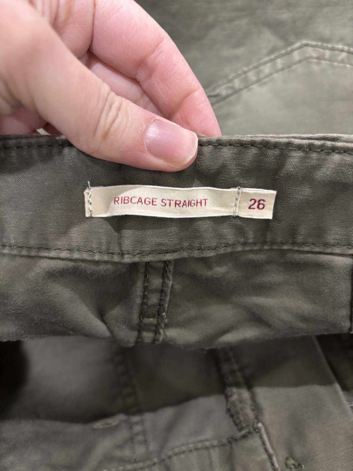 LEVIS • Women’s Ribcage Straight Utility Pants in Olive Night Deep Front Pockets Size 26 Rise 12” Inseam Length 26” Good Condition- Minimal Wear