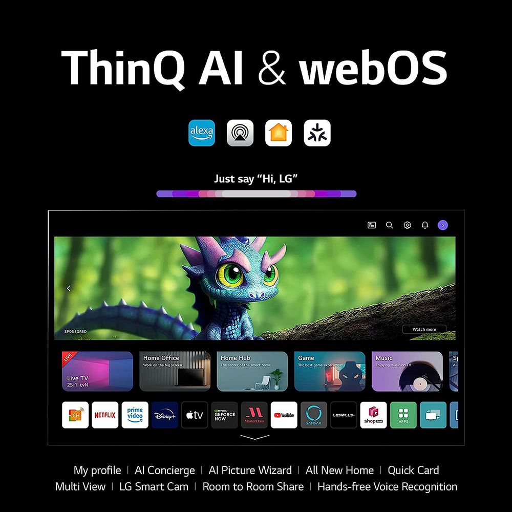 E9LGOLED77G3PUAOB Menu Beach Camera Home Shipping Policy Return Policy About Beach Camera Add to Favorite Sellers Photo & Video Television Audio GPS Computers Printers Luggage Home & Garden LG OLED evo G3 77 Inch 4K Smart TV (2023)(OPEN BOX) + 1 Year Warranty Catalog #: E9LGOLED77G3PUAOB MFG Part #: E9LGOLED77G3PUAOB Condition: Open Box Included with your bundle PRODUCT INFORMATION Marvel at beautiful quality and performance you can only get from LG OLED. The α9 processor is exclusive to LG OLED and powers the G3’s incredible native 120Hz refresh rate, Brightness Booster Max and the intelligence behind an unforgettable watching experience. We’re celebrating a decade of brilliance that shows no sign of stopping. LG OLED’s iconic self-lit pixels shine up to 70% brighter with the Light Boosting Algorithm, Light Control Architecture, and other improvements driven by LG’s exclusive, next-gen α9 processor. Luminous brightness no matter where you watch Get rich, accurate colors in bright or dark scenes with 100% color volume Mounts like a picture The specially designed wall bracket gives your OLED TV a flush fit with virtually zero gap against the wall. Plus, the G3 lets you display artwork or you own photos while the TV is off. Experience your passions on an LG OLED The games you love look even better on OLED. Enjoy gaming with the blazing-fast 0.1 ms response rate, and NVIDIA G-Sync compatibility, AMD FreeSync Premium and VRR support for smoother, clearer picture. More definition than ever before LG OLED’s exclusive α9 processor use AI to detect what you're watching and automatically sharpen and upscale the picture quality to 4K resolution and virtual surround sound. Enhanced detail in every frame OLED Dynamic Tone Mapping Pro refines images within the frame. That means it emphasizes contrast in low-gradation areas (solid or dark areas of an image), brightens mid-tone areas and adds expressive detail to high gradation areas. Outstanding sharpness See images that naturally draw your eye in even richer detail with OLED’s HDR Expression Enhancer. This technology tone-maps specific images for incredible sharpness. Smart TV, simplified Less searching, more streaming, thanks to the next generation of AI technology. Enjoy your favorite content including fitness, sports, entertainment and more. With Quick Cards, group your favorite apps into categories and use the Magic Remote to easily find what you're looking for. Get instant access to over 300 free channels with LG Channels. Get lost in cinematic sound Experience sound that moves you with the G3’s built-in audio upgrades. AI Sound AI virtually mixes sound to create surround speaker audio for remastered clarity. Sizes to fit your space From the 55” for solo movie marathons to the crowd-pleasing 83” for the most exciting sporting showdowns, the vast LG OLED G3 size range has something for everyone. Confidence that goes the distance With a 5-year panel warranty —and industry-leading tech perfected over a decade—you can watch on and on with confidence and peace of mind that we stand behind our premium LG OLED evo TV SPECIFICATIONS ACCESSORIES INCLUDED E-Manual Yes Power Cable Yes (Attached) Quick Start Guide Yes Remote Magic Remote w/ NFC Remote Control Battery Yes (AA x 2EA) Wall Mount Flush Mount Included (Stand sold separately) AI TV(ARTIFICIAL INTELLIGENCE) Amazon Alexa Compatible Yes (Built-in) Apple Yes Content Partners Netflix, HBO Max, Prime Video, Disney+, Apple TV, Hulu, Paramount+, Peacock, Youtube TV, Spotify, iHeartRadio and more Full Web Browser Yes Google Home Compatible Yes Hands-free Voice Control Yes Home Dashboard Yes Intelligent Voice Recognition Yes LG Channels Yes LG ThinQ® AI Yes Magic Remote Control Built-In Operating System webOS 23 Sports Alert Yes AUDIO AI Sound Pro / AI Sound AI Sound Pro (Virtual 9.1.2 Up-mix) Audio Codec AC4, AC3(Dolby Digital), EAC3, HE-AAC, AAC, MP2, MP3, PCM, WMA, apt-X (refer to manual) Bluetooth Surround Ready Yes (2 Way Playback) Dolby Atmos® Yes DTS Decoder Yes LG Sound Sync Yes Speaker Direction Down Firing Speaker System 4.2 Channel WiSA Ready Yes (Up to 2.1 Channel) CONNECTIVITY Bluetooth® Support Yes (v 5.0) Ethernet Input 1ea HDMI Audio Return Channel (ARC) eARC (HDMI 2) HDMI Input 4ea (supports 4K 120Hz, eARC, VRR, ALLM, QMS as specified in HDMI 2.1 (4 port)) HDMI-CEC (Simplink) Yes IP Control Yes NEXTGEN TV (ATSC 3.0) Yes RF Connection Input (Antenna/Cable) 1ea RS-232C Input (Mini Jack) Yes Smart Phone Connectivity Yes (LG ThinQ) TV Tuner ATSC 3.0, Clear QAM USB Ports (v 2.0) 3ea (v 2.0) Wi-Fi® Standard Wi-Fi Certified (Wi-Fi 6E) DIMENSIONS/WEIGHTS Packaging Dimensions (WxHxD) 74.6 X 44.5 X 9" Packaging Weight 124.1 lbs Stand Width 19.7" TV Dimensions with Stand (WxHxD) 67.4 X 40.9 X 12.6" TV Dimensions without Stand (WxHxD) 67.4 X 38.4 X 1" TV Weight with Stand 94.4 lbs TV Weight without Stand 81.1 lbs VESA Mounting (W x H) 300 x 300 GAMING ALLM (Auto Low Latency Mode) Yes Cloud Gaming NVIDIA Geforce Now, Utomik FreeSync™ Yes Game Optimizer Yes (Game Dashboard) G-SYNC Compatible Yes HGiG Yes Response Time <0.1 ms VRR (Variable Refresh Rate) Yes PICTURE(PANEL) Display Resolution 4K Ultra HD (3,840 x 2,160) Display Type 4K OLED Perfect Black Yes PICTURE(PROCESSING) AI Picture AI Picture Pro HDR (High Dynamic Range) Dolby Vision / HDR10 / HLG Motion OLED Motion Picture Processor α9 AI Processor Gen6 Upscaling AI Super Upscaling 4K POWER Annual Power Consumption 313 W Power Consumption 170 W Power Supply (Voltage, Hz) AC 120V, 50/60Hz Standby Power Consumption Under 0.5 W Included In Your Bundle LG OLED evo G3 77 Inch 4K Smart T... LG OLED evo G3 77 Inch 4K Smart TV (2023) - Open Box 120Hz Refresh Rate Enhanced Detail in Every Frame Get Lost in Cinematic Sound HDR Expression Enhancer (Quantity included 1) MFG Part#: OLED77G3PUA CPS 1 Year Warranty for Open Box P... CPS 1 Year Warranty for Open Box Products - FREE WITH YOUR PURCHASE 1 Year Warranty for any Open Bo