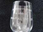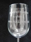 New - Without Box- Funny / Humorous Tall Etched Wine Glass. Comedy Gift. Retirement Gift. Special Occasion Gift. Large Clear Wine Glass with Etched wording - " A Retired Husband is often a Wife's FULL TIME JOB". 3" Top & Bottom diameter x 9-1/4" Tall Weighs 11 oz. without any packaging. This can be just the right gift for the right person. If you have any questions please contact us.