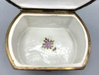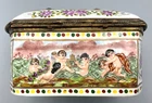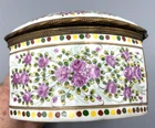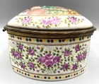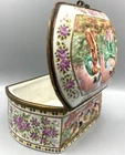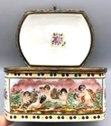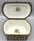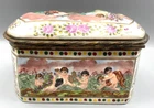 ANTIQUE FRANCE ITALY CAPODIMONTE JEWELRY CASKET BOX ENAMELED PORCELAIN BRONZE MOUNT CHERUBS GRECIAN MOTIF THIS BEAUTIFUL CAPODIMONTE BOX MEASURES APPROX. 6 3/4" LONG, 4 3/4" WIDE AND 3 3/4" HIGH. IT IS MARKED ON THE BOTTOM WITH THE BLUE CROWN OVER N, (NEOPOLITAN) AND 'FRANCE'. RESEARCH OF ONLINE INFORMATION SUGGESTS IT DATES FROM 1890's - 1920's, BUT I DEFER TO CAPODIMONTE COLLECTORS FOR MORE PRECISE AGE ESTIMATIONS. THE BRONZE MOUNTS HAVE A UNIQUE CURVED TWIST DESIGN AND ARE PATINATED FROM AGE. THE HINGE AND S-CURVE CLASP ARE SECURE. THE PORCELAIN IS HAND ENAMELED WITH CHERUBS AND 2 GRECIAN STYLE WOMEN, IN A LOW BAS-RELIEF STYLE. THE SIDES AND TOP ARE DECORATED WITH LAVENDER COLORED ROSES. THE CONDITION IS EXCELLENT. NO CHIPS OR DAMAGE. * I ACCEPT PAYPAL ONLY. * I DO NOT SHIP INTERNATIONALLY AT THIS TIME. * I SHIP USPS PRIORITY, INSURED. * SIGNATURE IS REQUIRED AT TIME OF DELIVERY. 1) ALL ITEMS ARE SOLD 'AS IS' AND SALE IS FINAL. 2) REFUNDS ARE ONLY CONSIDERED IN THE EVENT THAT AN ITEM HAS BEEN GROSSLY MISREPRESENTED. 3) PLEASE DON'T HESITATE TO ASK ANY QUESTIONS YOU MIGHT HAVE, AND REVIEW THE PHOTOS FOR DESCRIPTION. I AM HAPPY TO SHARE MORE PHOTOS UPON REQUEST. .