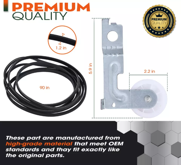 US Warehouse - FREE & FAST Shipping in USA Package include: 4 x dryer drum rollers, 1 x dryer drive belt and 1 x dryer pulley and 1x Spring as the picture Parts Compatibility: Drum Roller AGM75510755, 4581EL2002A, 4581EL2002B, 4581EL2002C, 4581EL2002D, 4581EL2002E, 4581EL2002H, 4581EL3001A, 4581EL3001C, 4581EL3001E, 4581EL3001F; Dryer Drum Belt 4400EL2001A, 4400EL2001C, 4400EL2001F ; Idler Pulley 4561EL3002A 4561EL3002B Compatibility : this is aftermarket part replace For LG Dryer. Fit for model : DLE2514W DLEX5101V DLE2101W DLEX7177RM DLE2301R DLEX7177WM DLEX8000V DLEX8000W DLEY1201V DLEY1201W DLE1001W DLE1501W DLE1310W DLE3170W DLEX9000V DLG2302R DLG2302W DLG2526W DLG3051W DLG3788W DLG5966W DLG0452W DLG1102W DLG1320W DLG2051W DLG2102W DLG2251W DLE2050W DLE2140W DLE2240W DLE2250W DLE2301W DLE2350R DLE3777W DLE4801W DLE4970W DLE5001W DLE5955G DLE5955W DLE8377NM DLE8377WM DLE0332W DLE0442W DLE1101W DLEX3470W DLEX3875V DLEX4070W DLEX5101W Package Includes: (As shown in the picture) Feedback 1.Any question for your order, please contact us in time, we will reply to you within 24 hours and give you a satisfactory answer. 2.If you are satisfied with our products and services, hope to take up your a little precious time to leave feedback reviews for our products.Thanks! 3.Your satisfaction is our effort. Welcome to order again! Have a great day! Our Policy 100% Satisfaction Guarantee Free and Fast Shipping in USA, US Warehouse 20% of restocking fee will be charged for return item.