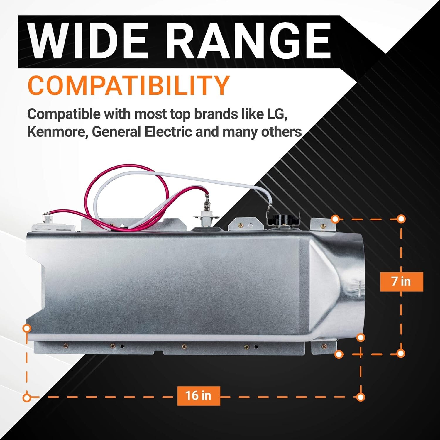 PLEASE READ THE DESCRIPTION OR MESSAGE ME TO CHECK IF YOUR MACHINE IS COMPATIBLE WITH THIS DEVICE. TIP: Press "Ctrl + F" and enter your model number or Text me SHIPPING 1-3 DAYS It only takes 1-3 days for you to receive the package because our warehouse is in the US We always work hard to make sure your package arrives as soon as possible. Recently Upgraded This product has been upgraded with high-quality materials and modern manufacturing technology, making it more durable and efficient than similar products on the market. -------------------------------------------------------------------------------------------------------------------- Compatible with Kenmore: 79681473210 It is made exactly fit for most top name brands (LG, Kenmore), and replaces part number and replaces part numbers: PS3527788, AP4438941, 5301EL1001H, 5301EL1001A, 5301EL1001E, 5301EL1001G, 5301EL1001J, 5301EL1001U, 5301EL1001W, AEG72910301, AP5072170, PS3527790, PS3527791, AH3527791, EA3527791, 1377645. Please note: Although these are interchangeable, if your dryer has three terminals at the temperature control, the 5301EL1001H or 5301EL1001J may be a better fit for your model. The Dryer Heating Element Assembly is compatible with a variety of LG dryer models: DLE0442G, DLE0442W, DLE0442W01, DLE1001W, DLE1101W, DLE1501W, DLE2050W, DLE2140W, DLE2240W, DLE2250W, DLE2301R, DLE2301W, DLE2350R, DLE2350W, DLE2512W, DLE2514W, DLE2515S, DLE2516W, DLE2522W, DLE2524W, DLE2601R, DLE2601W, DLE2701V, DLE3050W, DLE3170W, DLE3733D, DLE3733S, DLE3733U, DLE3733W, DLE4801W, DLE4870W, DLE4970W, DLE5001W, DLE5955G, DLE5955W, DLE7177WM, DLEX0001TM, DLEX2450R, DLEX2501V, DLEX2501W, DLEX2550R, DLEX2550W, DLEX2650R, DLEX2650W, DLEX2655V, DLEX2801L, DLEX2801W, DLEX2901V, DLEX3001P, DLEX3001R, DLEX3001W, DLEX3070R, DLEX3070W, DLEX3250W, DLEX3360R, DLEX3360V, DLEX3360W, DLEX3370R, DLEX3370V, DLEX3470V, DLEX3470W, DLEX3550V, DLEX3550W, DLEX3875V, DLEX3875W, DLEX3885C, DLEX3885W, DLEX4070V, DLEX4070W, DLEX4270V, DLEX4270W, DLEX5000V, DLEX5000W, DLEX5101V, DLEX5101W, DLEX5170V, DLEX5170W, DLEX5680V, DLEX5680W, DLEX5780VE, DLEX5780WE, DLEX6001V, DLEX6001W, DLEX7177RM, DLEX7177WM, DLEX7700VE, DLEX7700WE, DLEX8000V, DLEX8000W, DLEX8377N, DLEX8377NM, DLEX8377WM, DLEX8500V, DLEX9000V, DLEX9000W, DLEY1201V, DLEY1201W, DLEY1701V, DLEY1701VE, DLEY1701WE, DLE3180W, DLE7200VE, DLEX3370W, DLEX3570V, DLEX3570W, DLEX4370K, DLEX4370W, DLEX5680VE, DLEX7600KE, DLEX7600WE, DLEX8100V, DLEX8100W, DLEX9500K, DLEY1701W, DLEY1901KE, DLEY1901WE, DLE2020W, DLE2150R, DLE2150S, DLE2150U, DLE2150W, DLE2301S, DLE2350S, DLE3075W, DLEX2501R, DLEX2501S, DLEX2550N, DLEX2550S, DLEX2550V, DLEX2650T, DLEX2650V, DLEX2801R, DLEX3250R, DLEX3250V, DLEX3650V, DLEX3700V, DLEX3700W, GDP1329CES2, DLE4901W, DLE5002W, DLE5070W, DLE5955S, DLE7100W, DLEX3070T, DLEX3070V, DLEX5175W, DLEX7600VE, DLE2240S, DLE2544W, DLE3777W, DLE5977B, DLE5977BM, DLE5977SM, DLE5977W, DLE5977WM, DLE6977S, DLE6977W, DLE7177SM, DLE9577SM, DLE9577WM, DLEX8377RM, RV1316AS, RV1321AS, RV1304A, RV1319VS, DKE2516W.